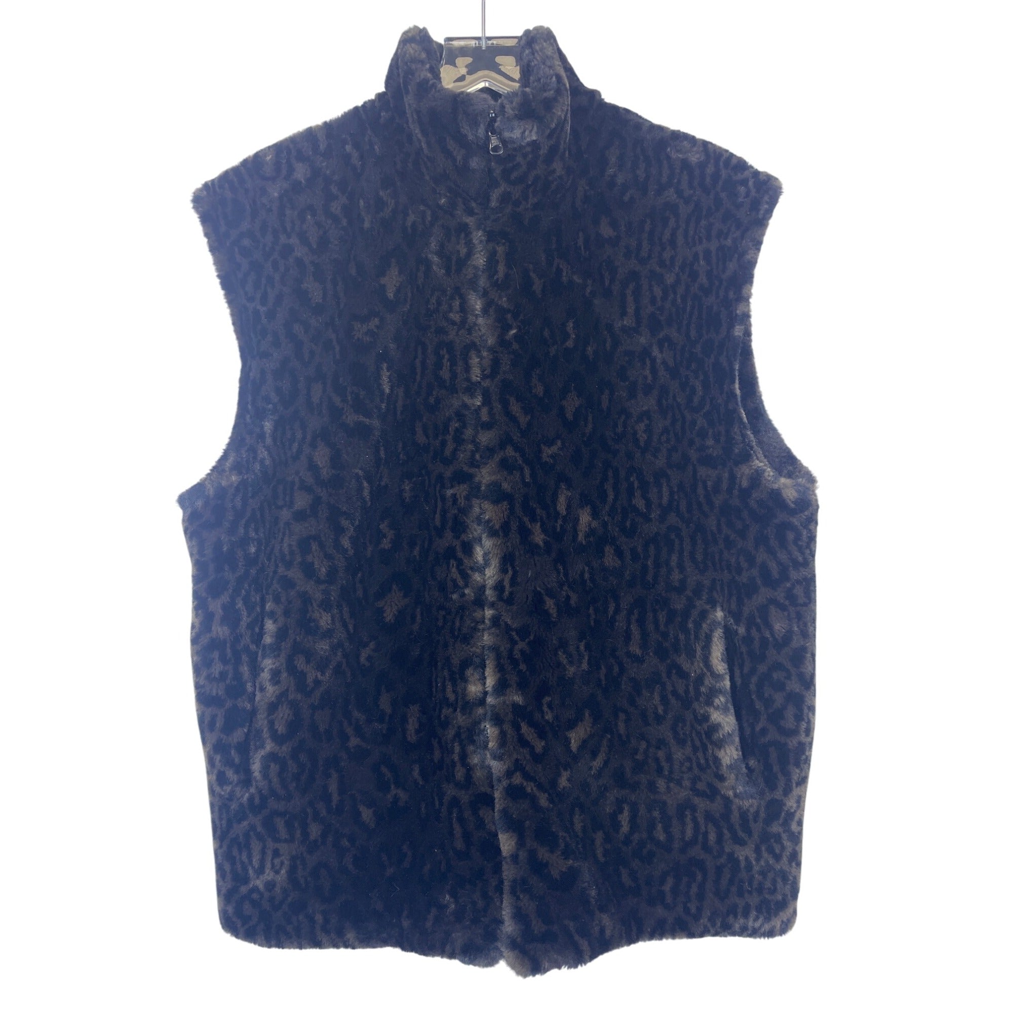 Leopard Print Faux Fur Womens Brown Sleeveless Vest Zip Front Plush Warm Outerwear