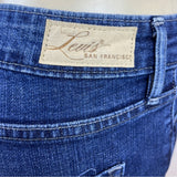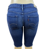 Levis Women's Demi Curve Denim Shorts Dark Wash Mid Rise Frayed Hem Size 4/27