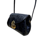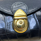 Lexiapel Womens Black Croc-Embossed Leather Gold Turn-Lock Closure Crossbody Bag
