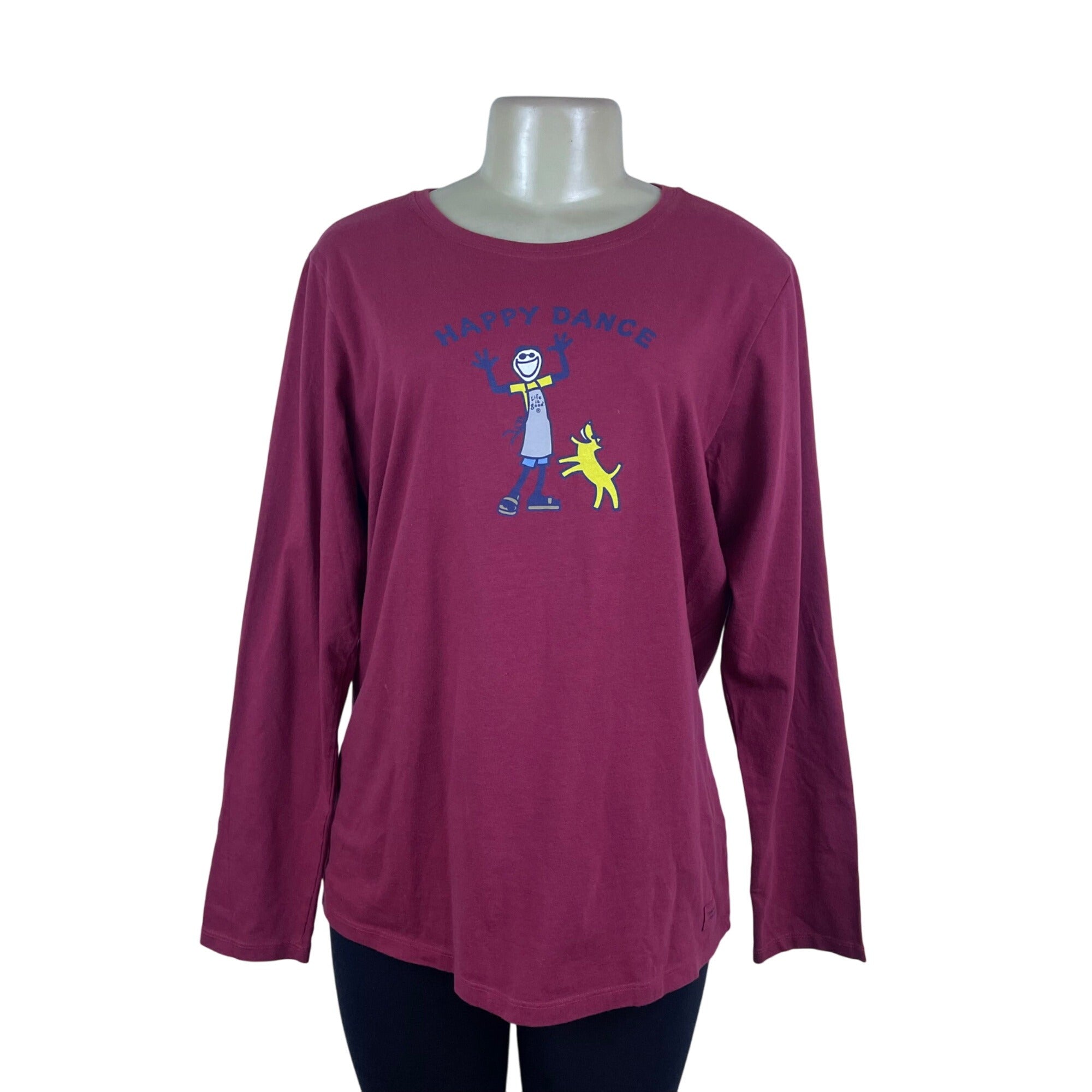 Life Is Good Women’s Burgundy Long Sleeve Happy Dance Graphic Shirt Size L - New