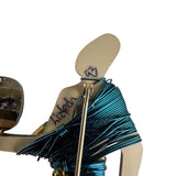 Liztech Gold Tone & Teal Figure Brooch Unique Wire Wrapped Beads Crystals