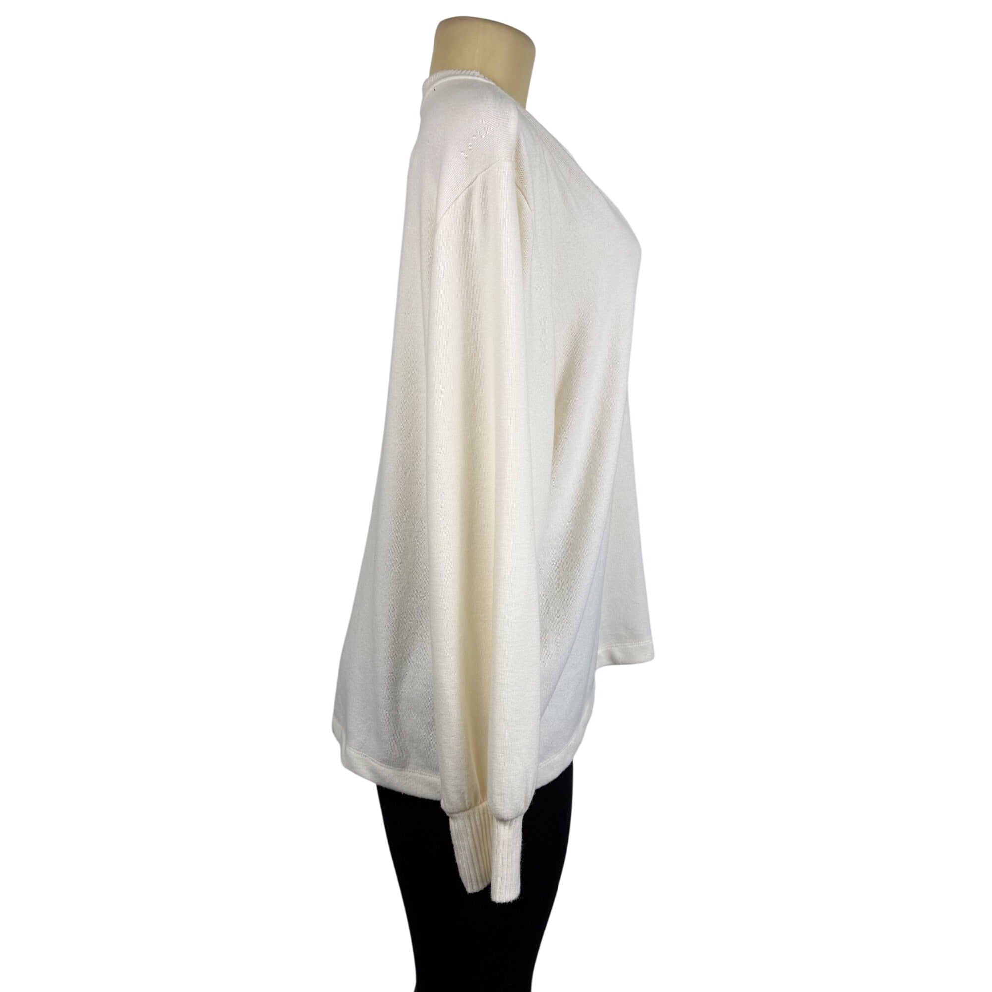 Loft Crew Neck Womens Ivory Knit Pullover Sweater Lightweight Long Sleeve Sz XL
