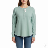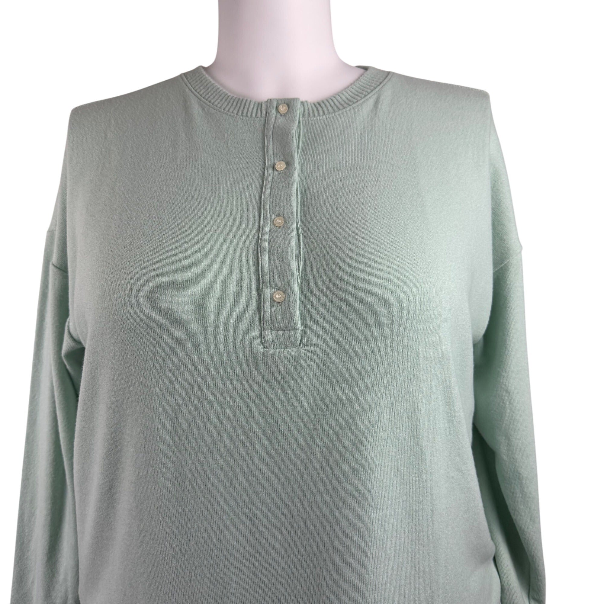 Loft Womens Mint Green Polyester & Rayon Sweater Button Neck Long Sleeve Size L
