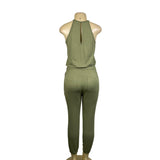 Loft Womens Olive Green Knit Halter Jumpsuit Tie Waist Keyhole Back XS