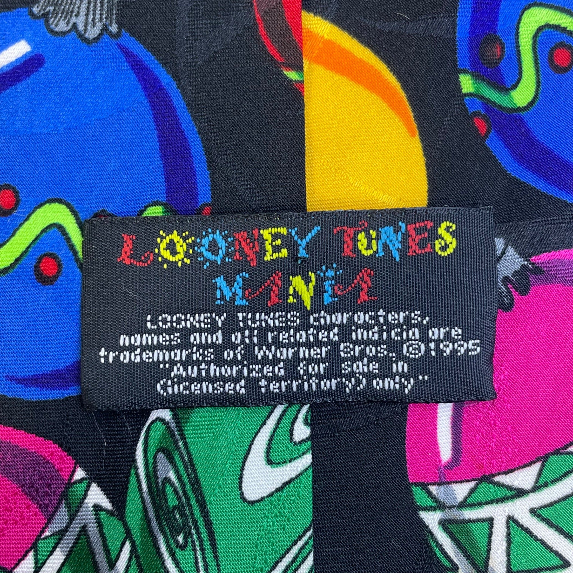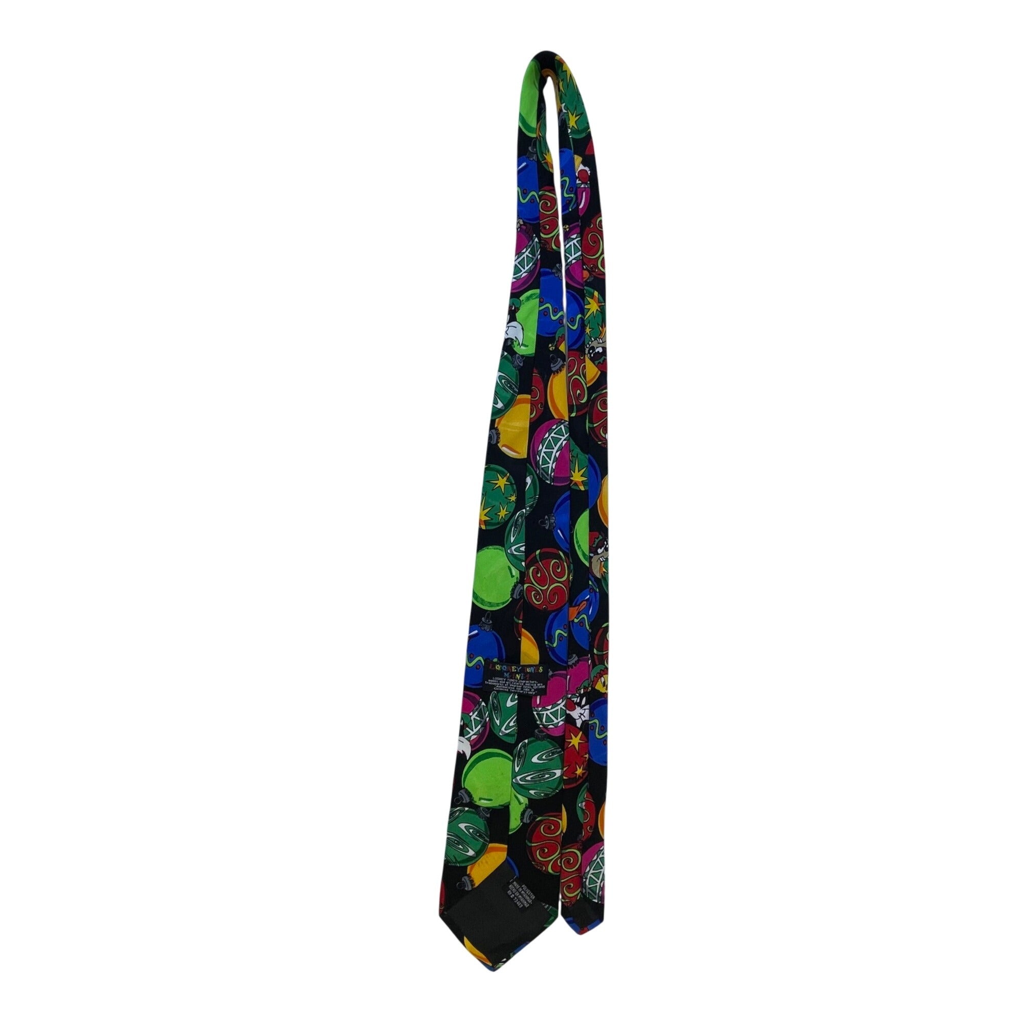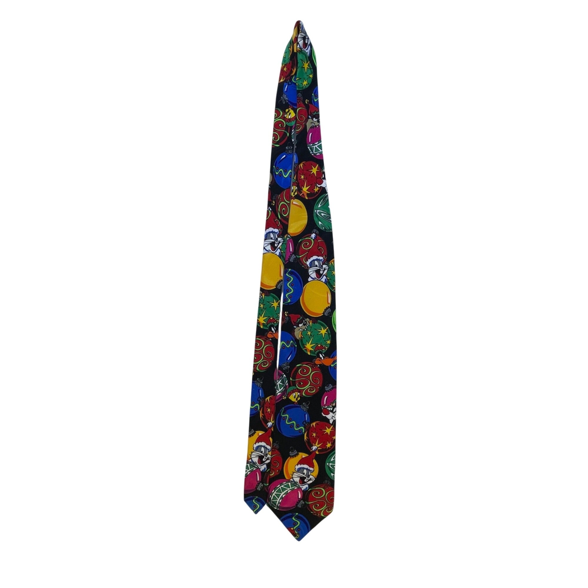 Looney Tunes Mens Black Polyester Christmas Tie With Bugs Bunny Ornament Design