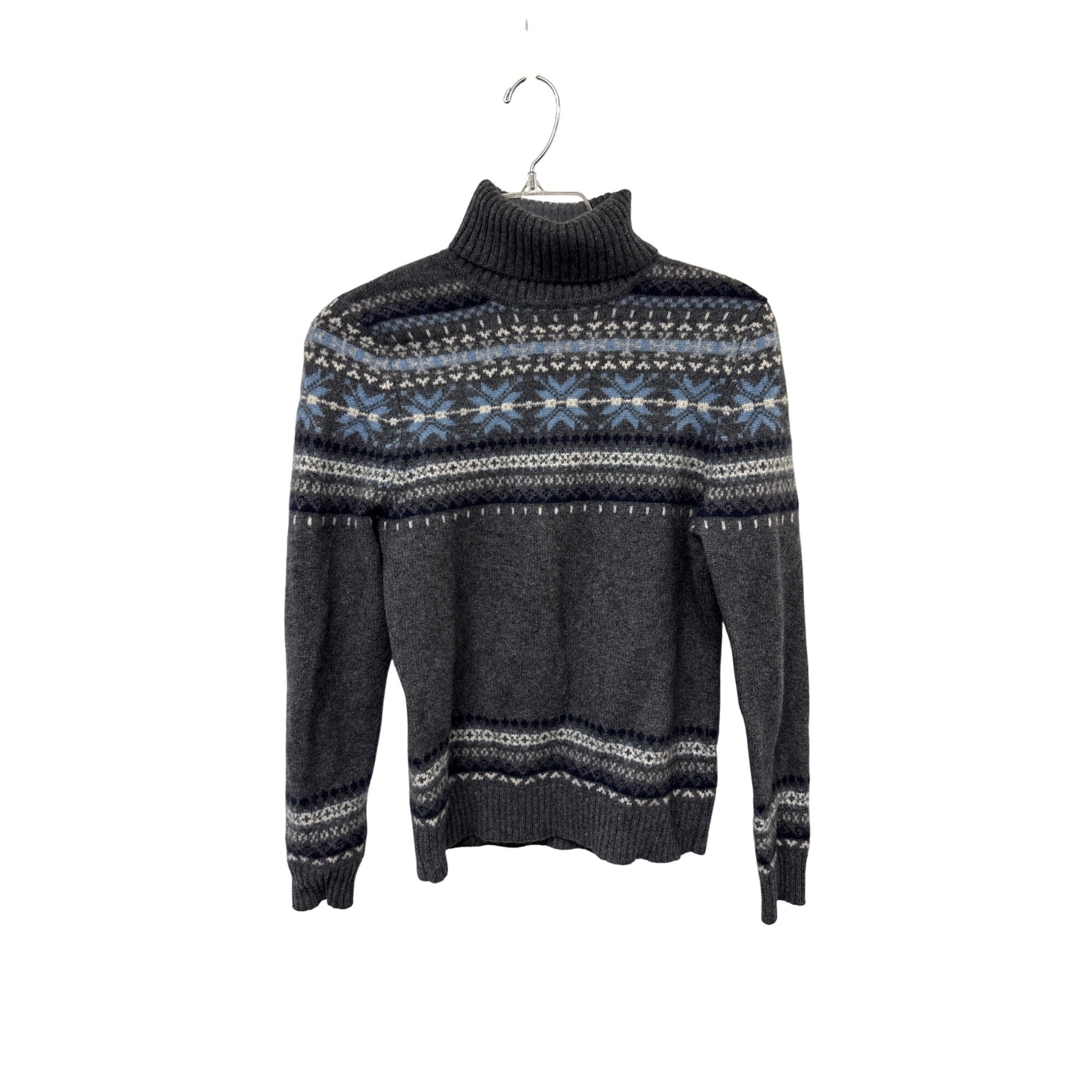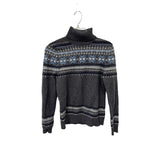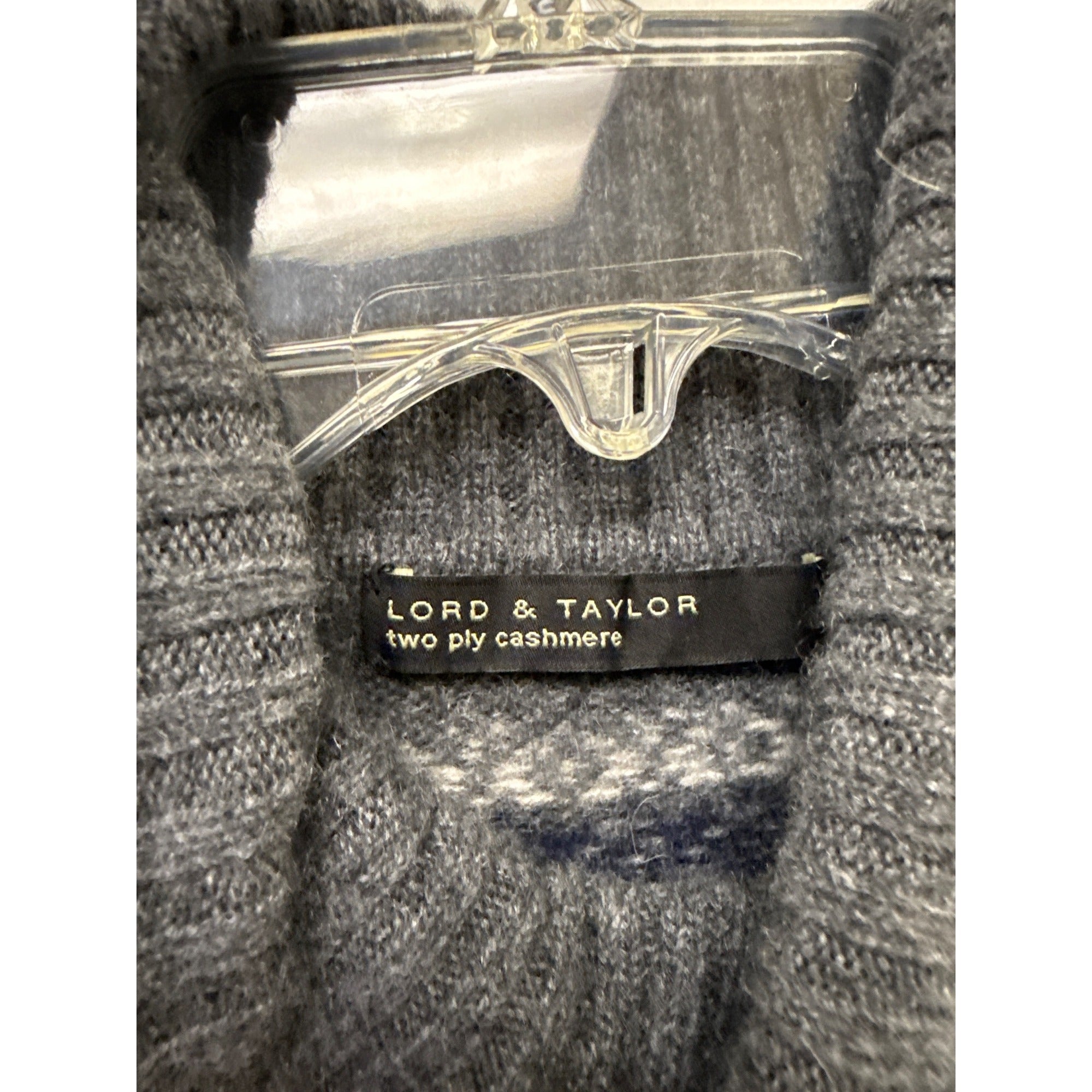 Lord & Taylor Womens Gray Cashmere Knit Fair Isle Turtleneck Sweater Size S