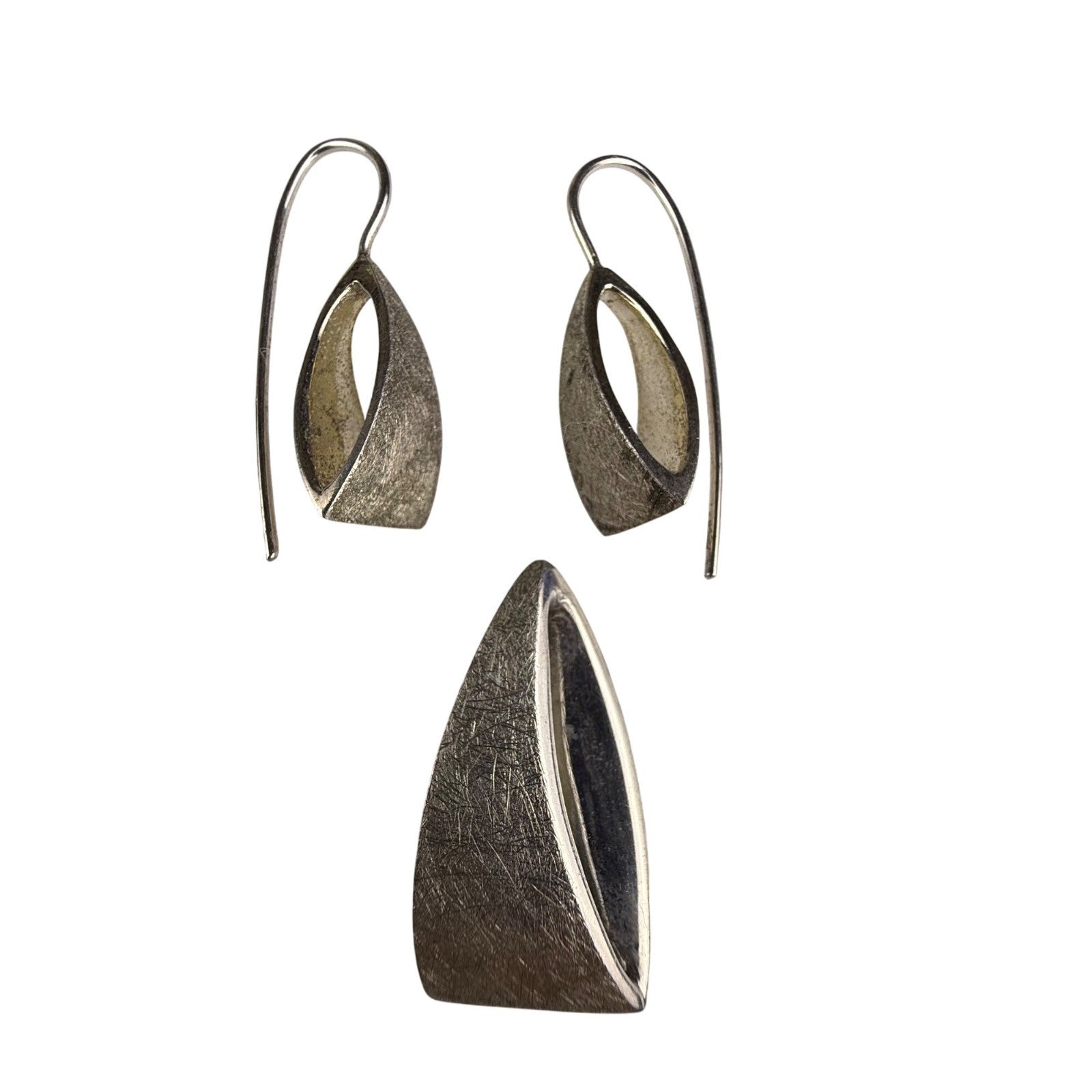 Loru Sterling Silver Modernist Pendant & Drop Earrings Set Abstract Mid Century