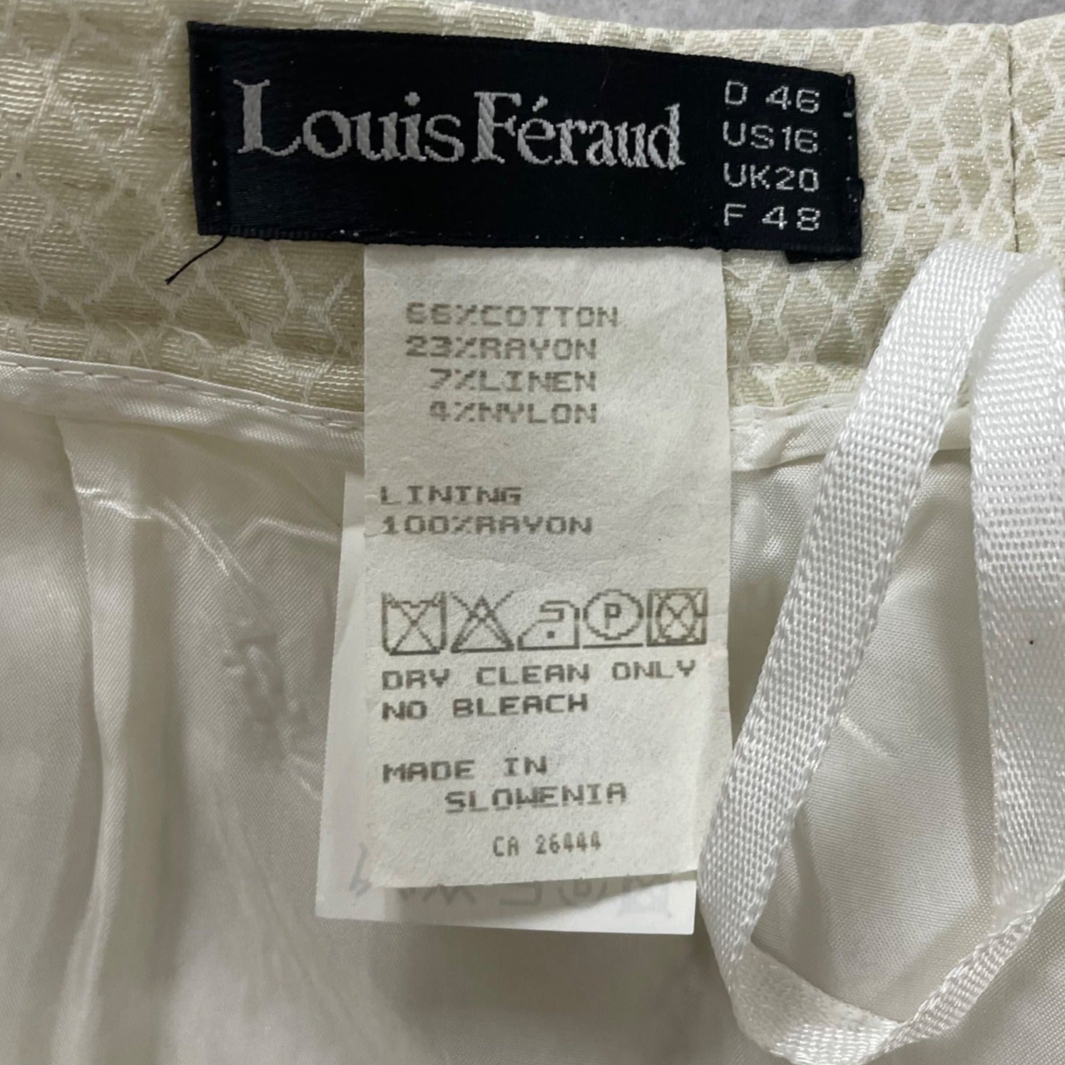 Louis Féraud Womens Cream Cotton & Rayon Pants Animal Print Size 16