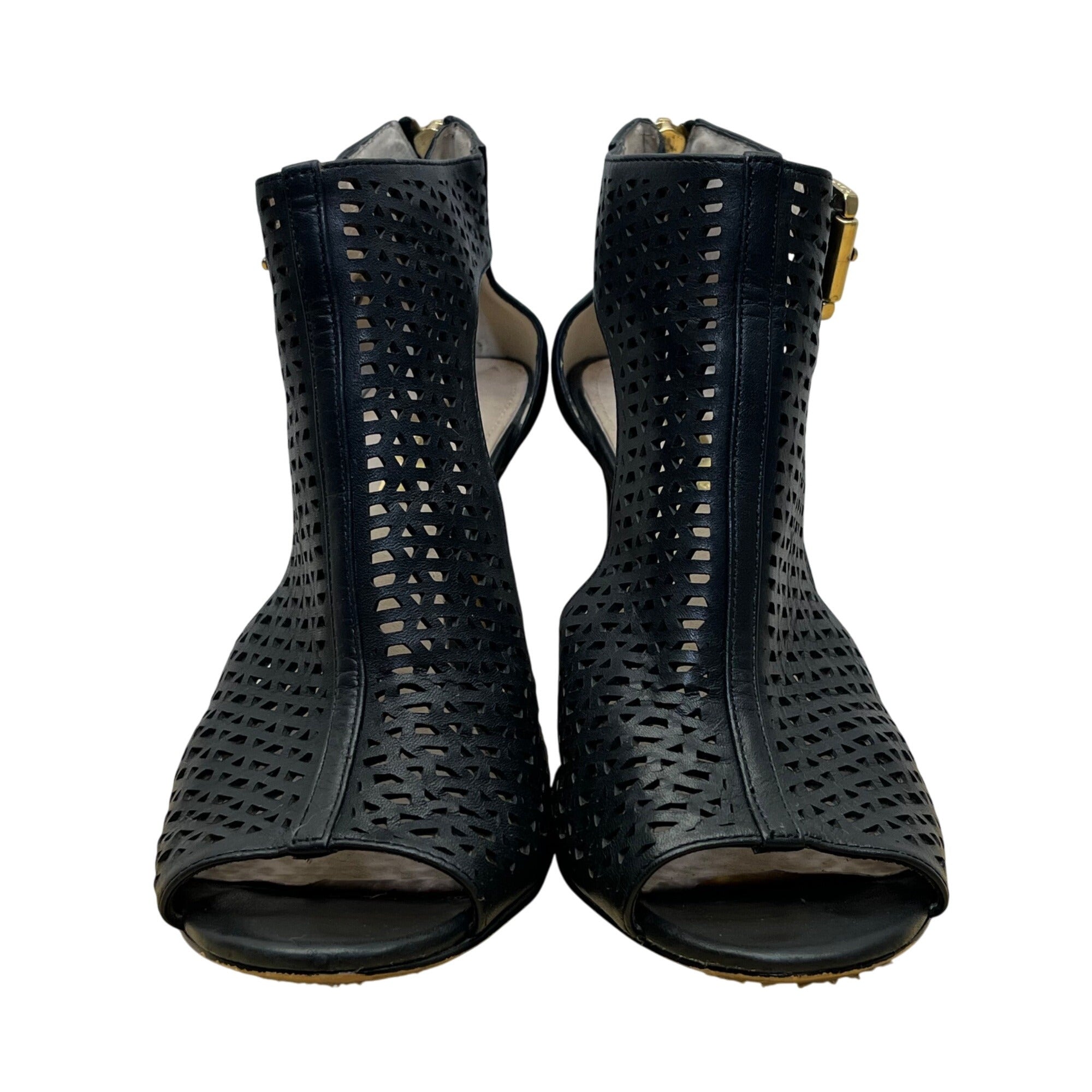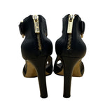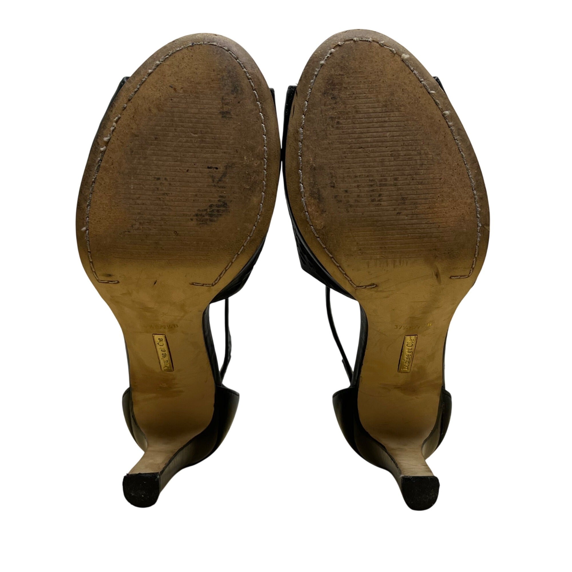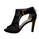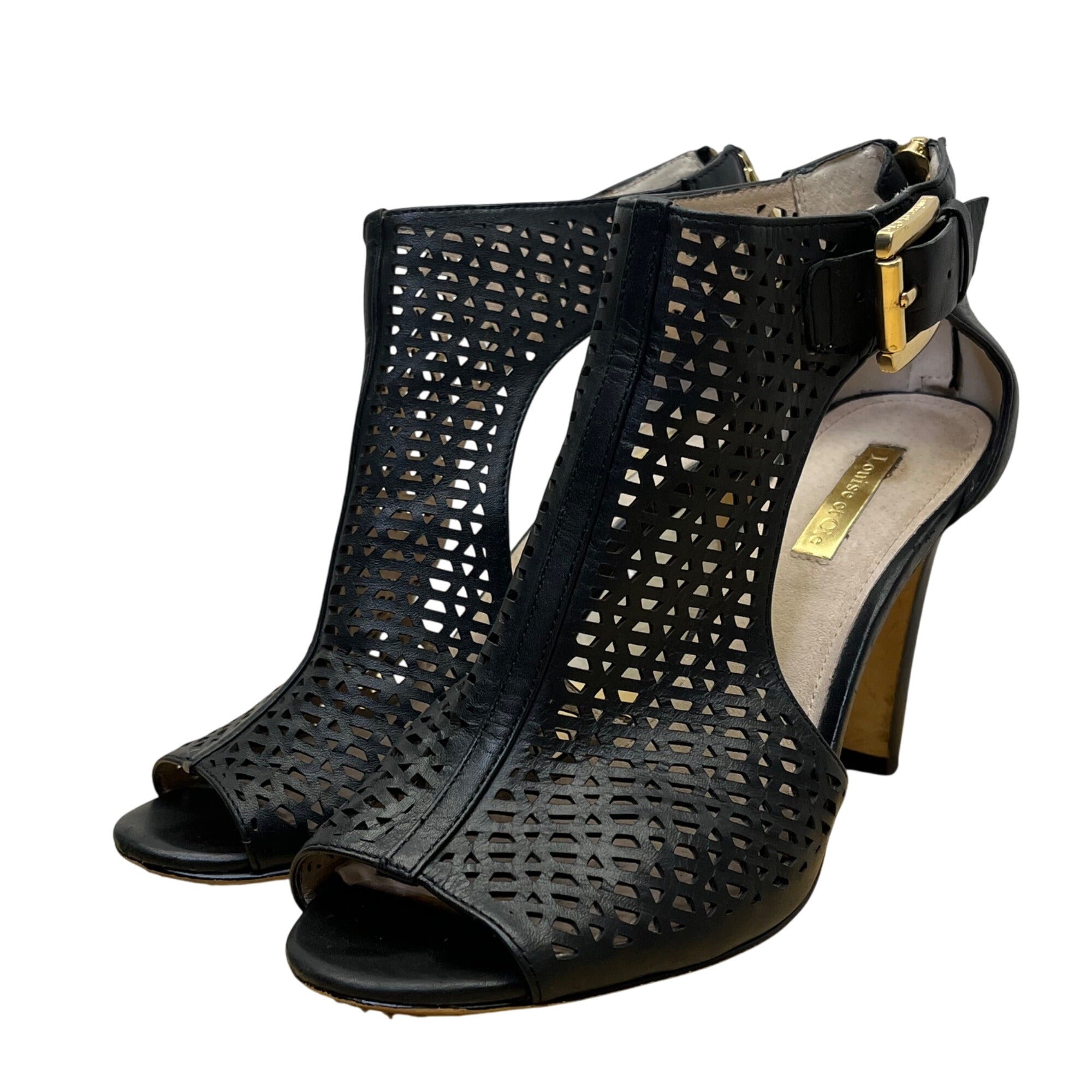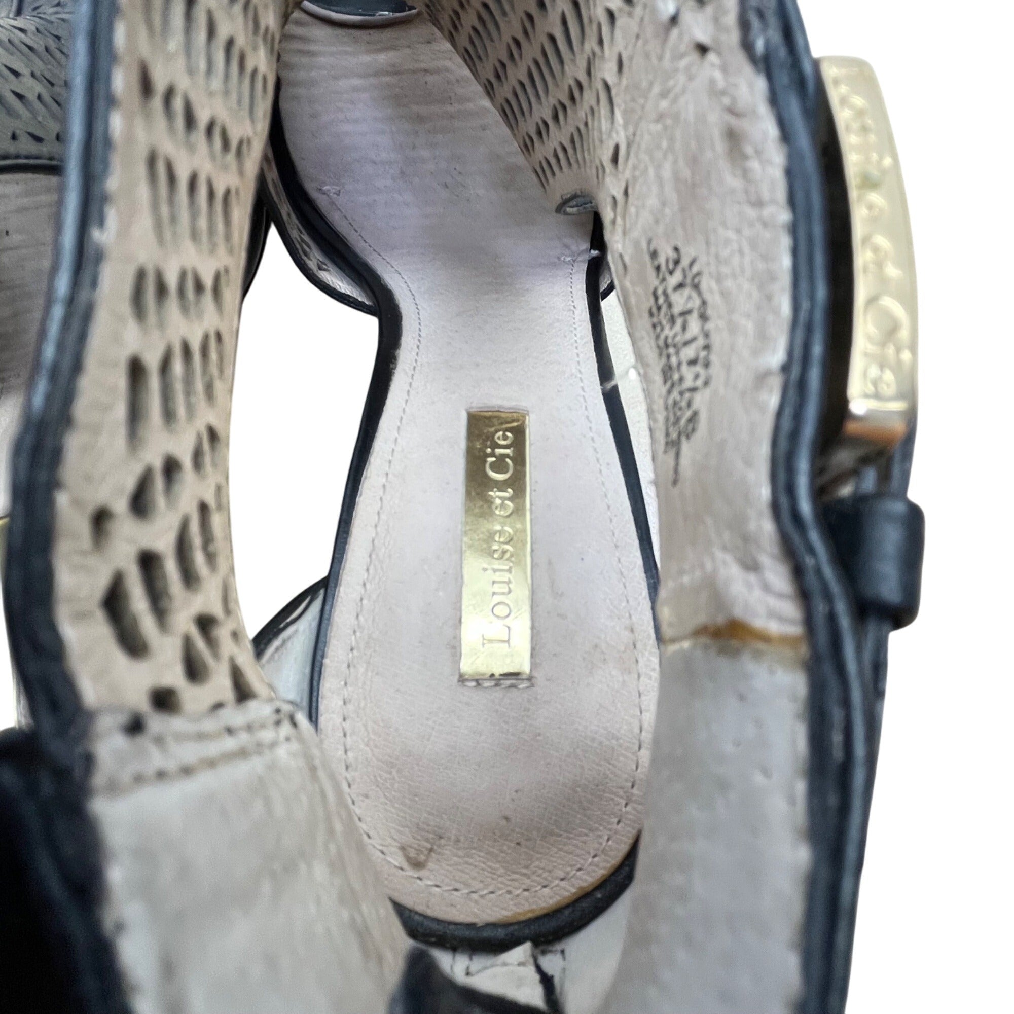 Louise Et Cie Womens Black Leather Adjustable Buckle Peep-Toe Heels Size 7.5B