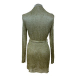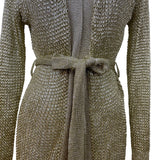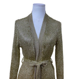Love Sense Womens Gold Metallic Open-Knit Cardigan Belted Long Sleeves Size S