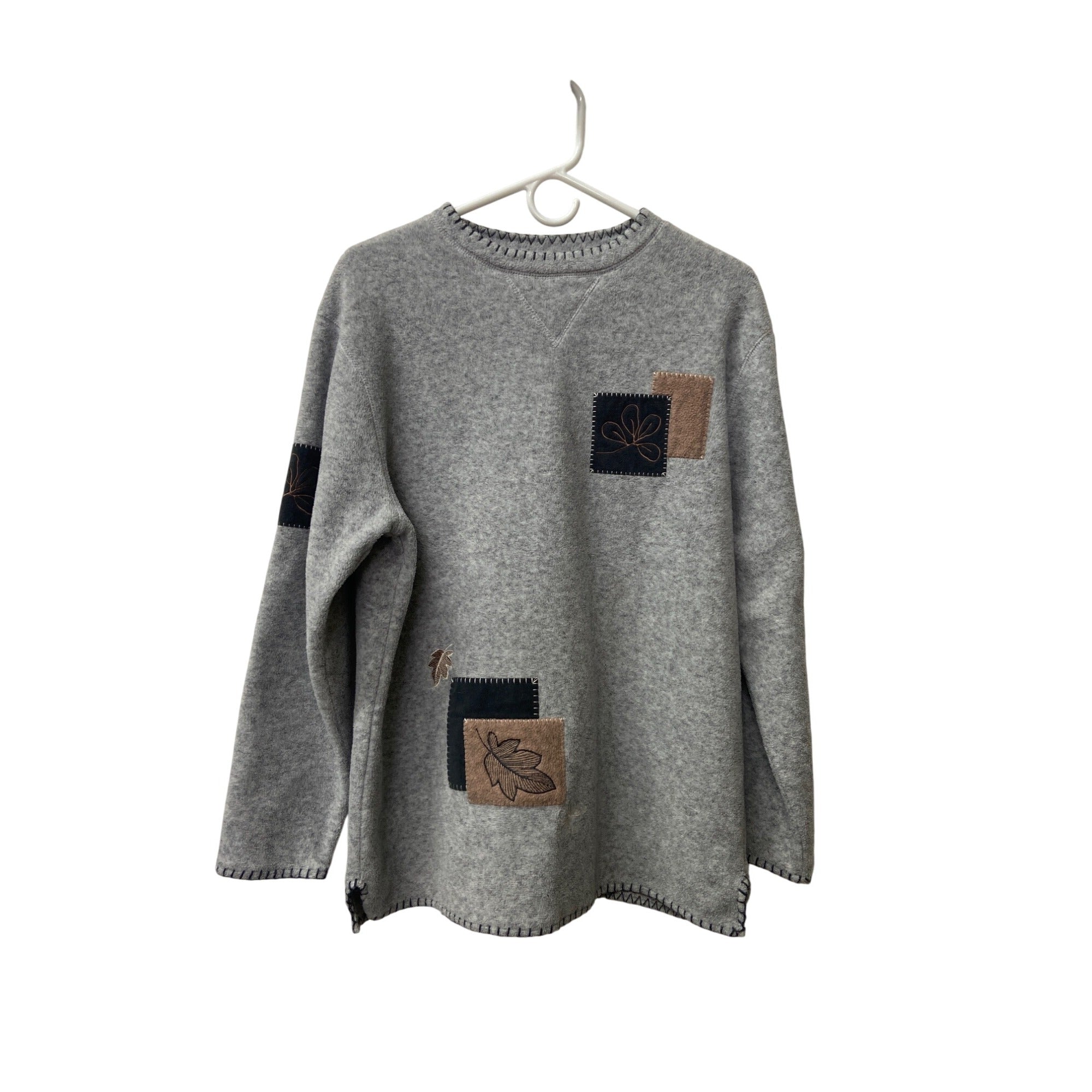 LT Sport Womens Gray Embroidered Patch Pullover Sweatshirt Size Small