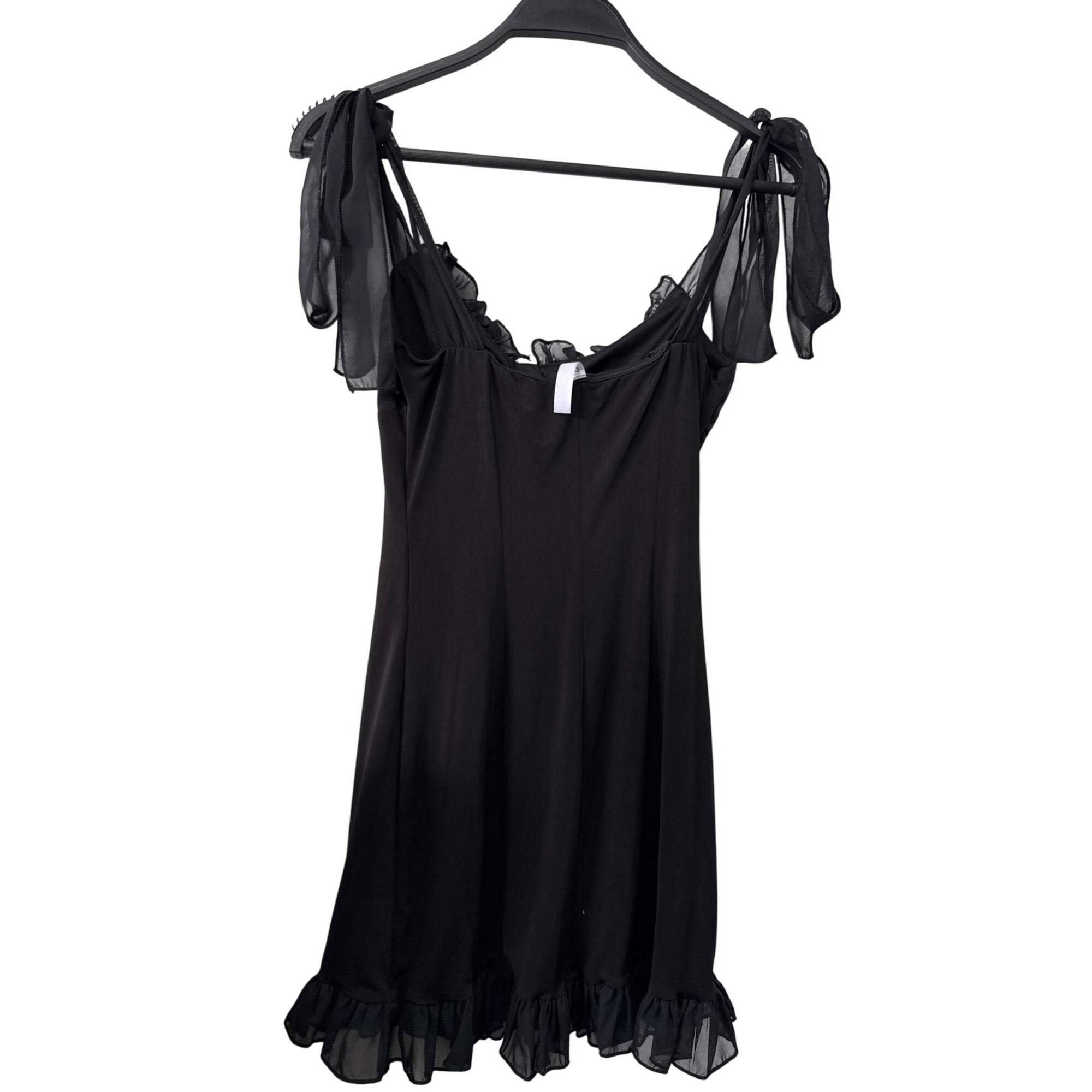 Lucy In The Sky Women’s Black Mini Dress With Ruffle & Tie Straps Small