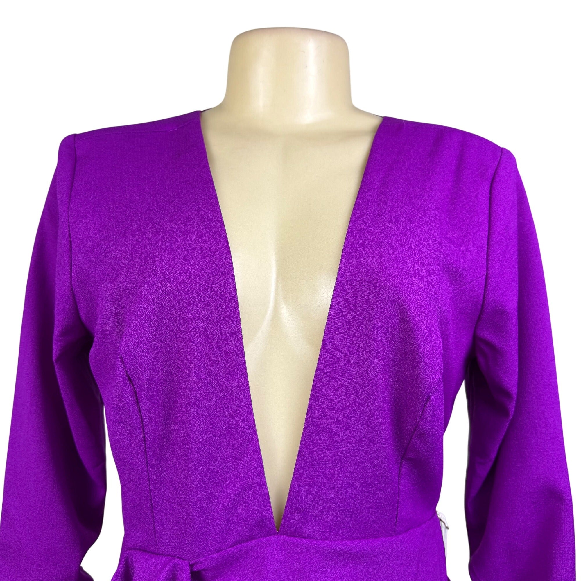 Luxxel Purple Polyester Plunge Neck Dress With Ruched Details & Open Back Sz L