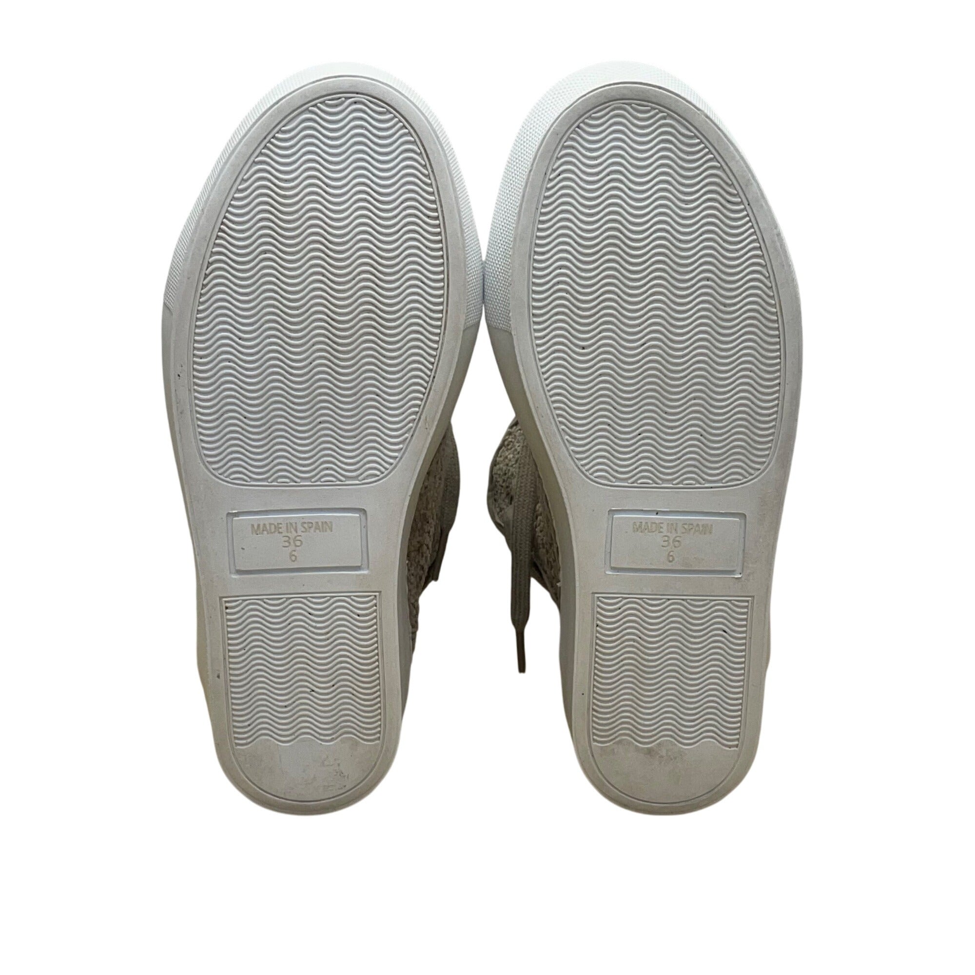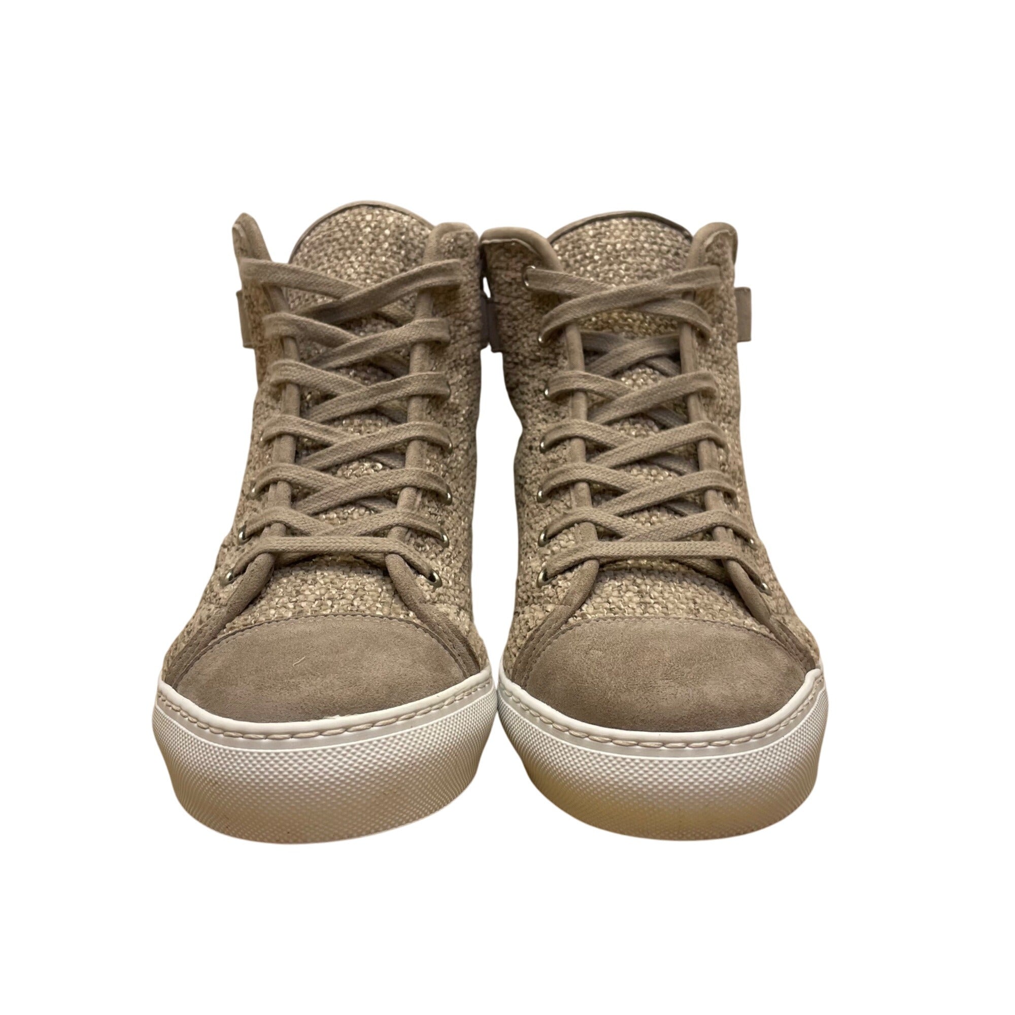 Madeleine Women’s Taupe Leather & Woven Adhesive Strap High-Top Sneakers Size 6