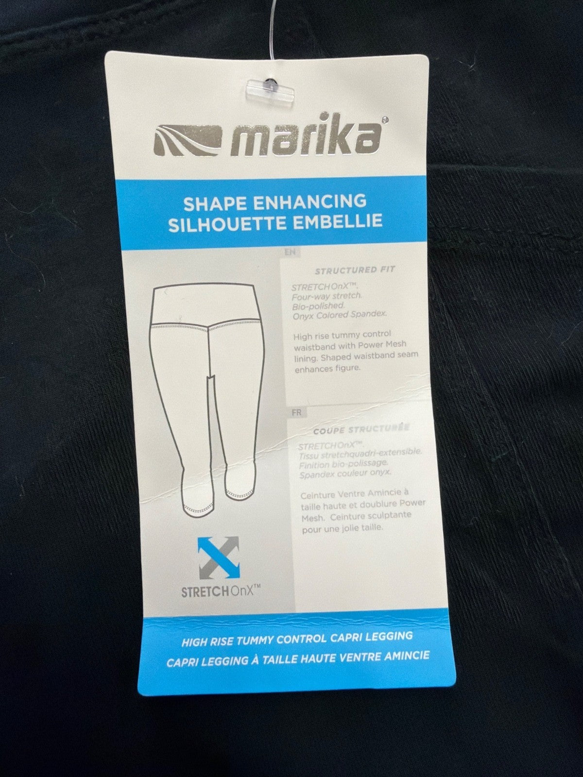 Marika Womens Black Capri Leggings With Pockets Small Stretchy Activewear