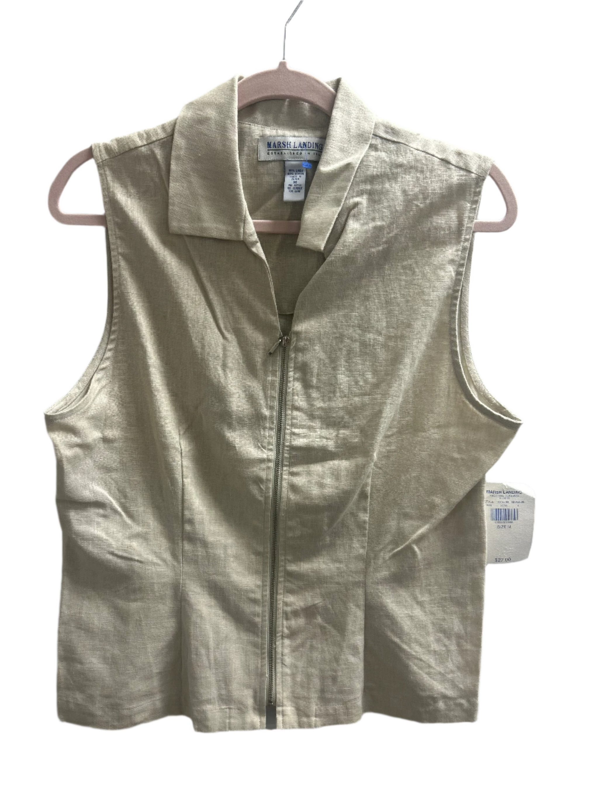 Marsh Landing Womens Beige Linen-Blend Zip Vest Size M