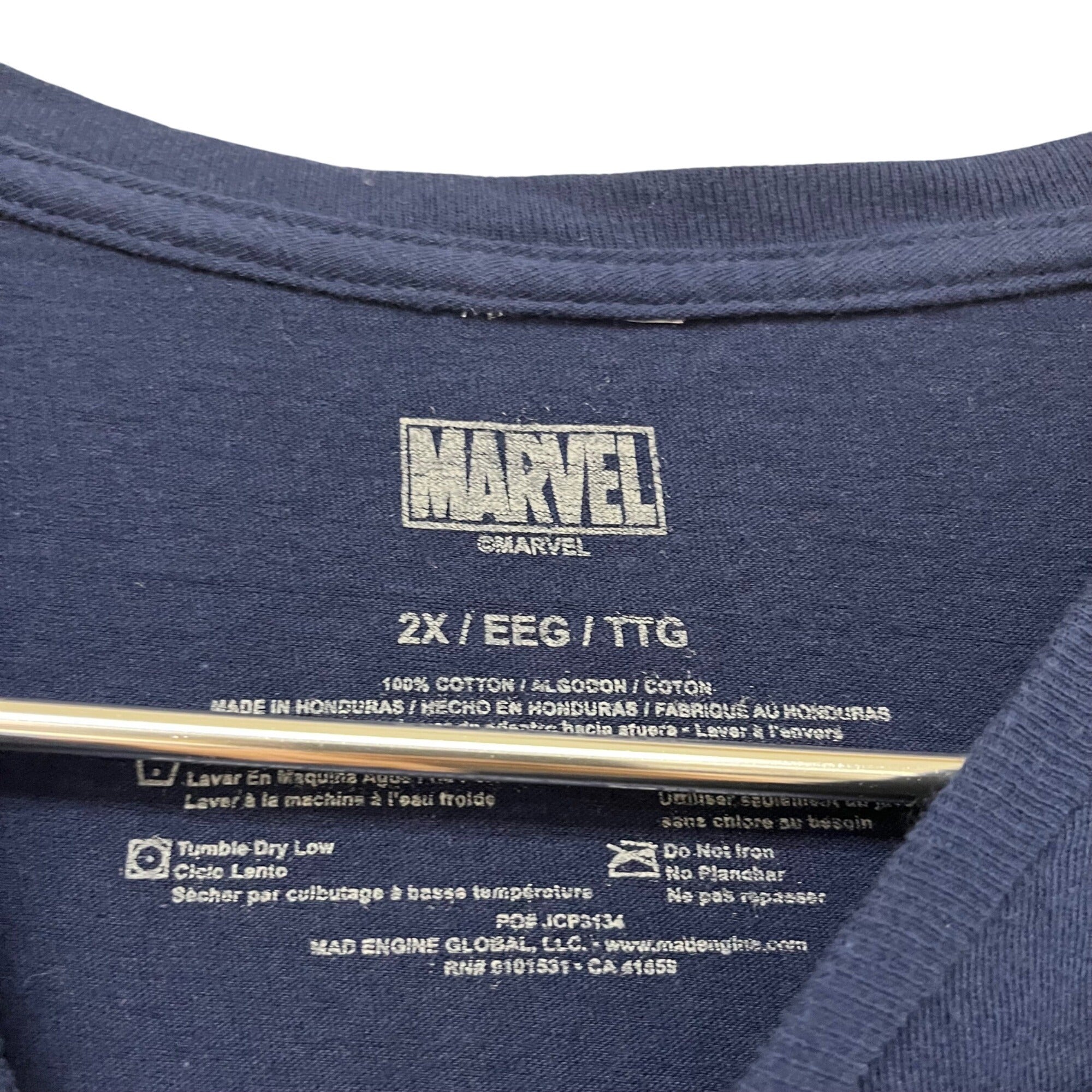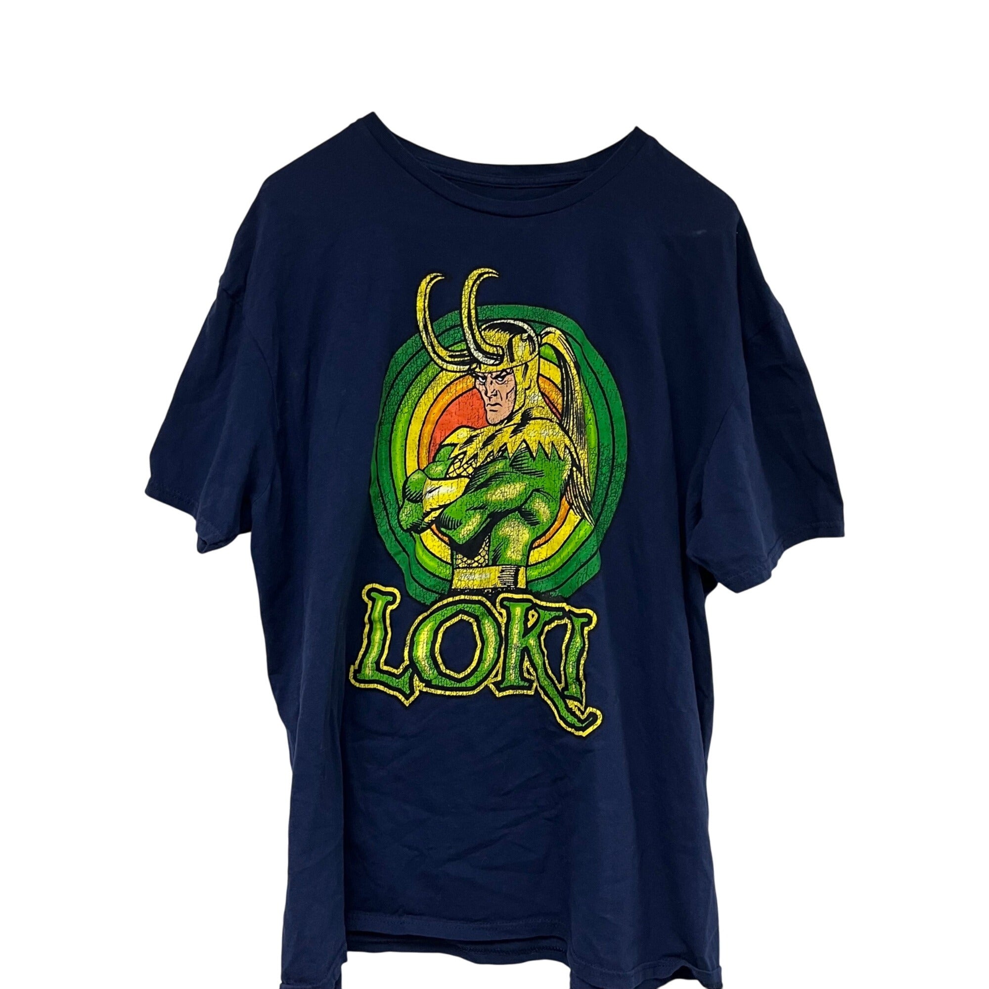 Marvel Mens Navy Blue Cotton Loki Graphic T-Shirt Size 2X Casual Crewneck Comic Design