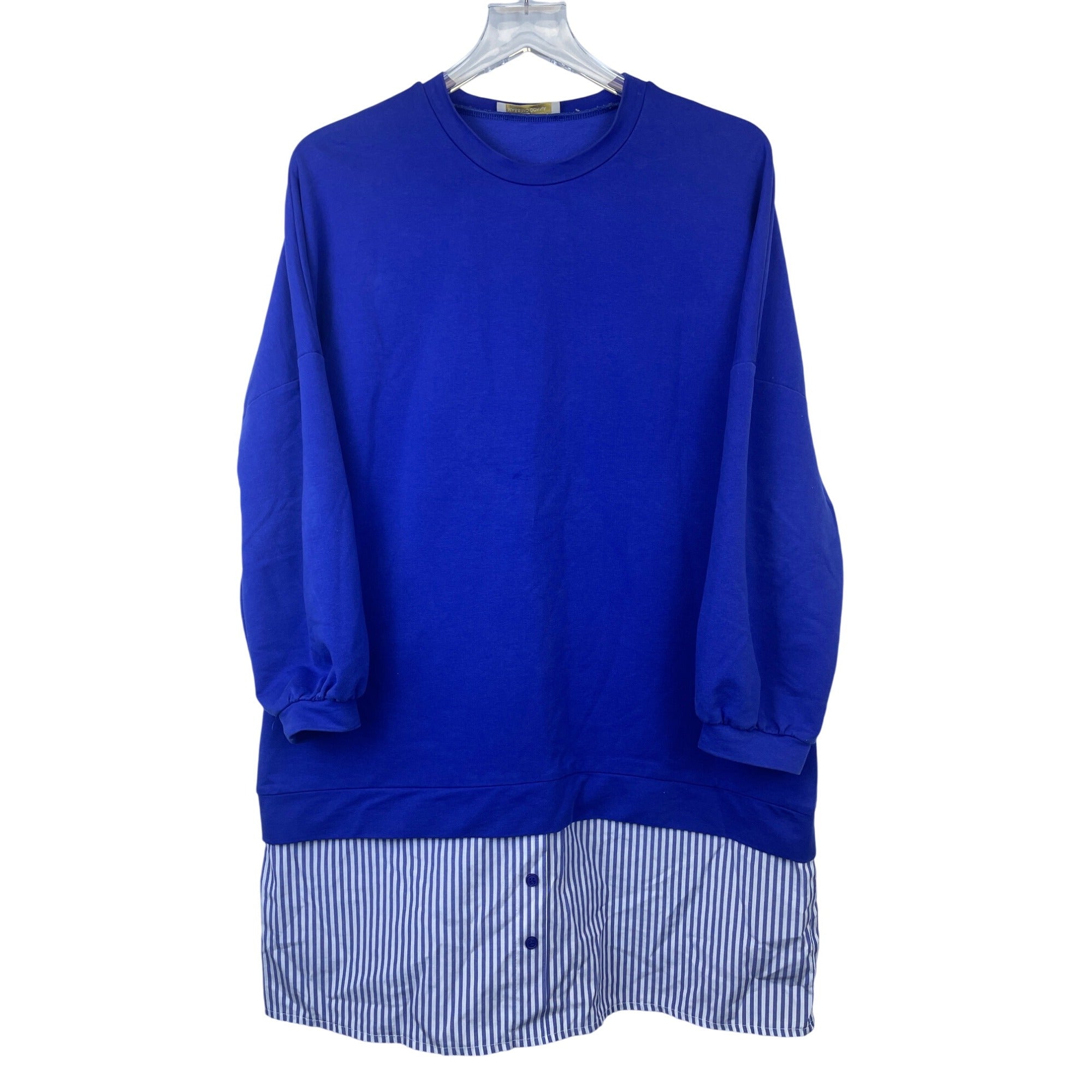 Massimo Donna Womens Blue Cotton Tunic Dress With Striped Hem And Buttoned Detail Size 1
