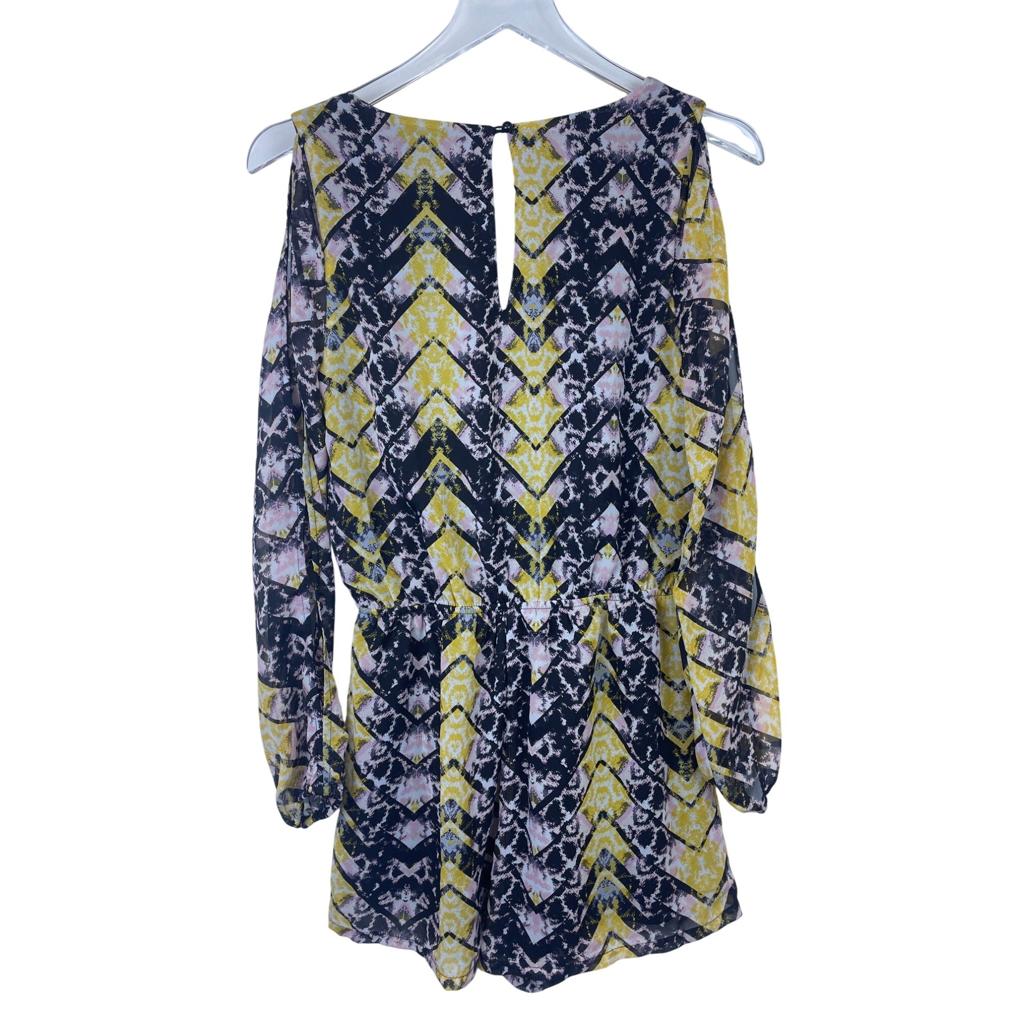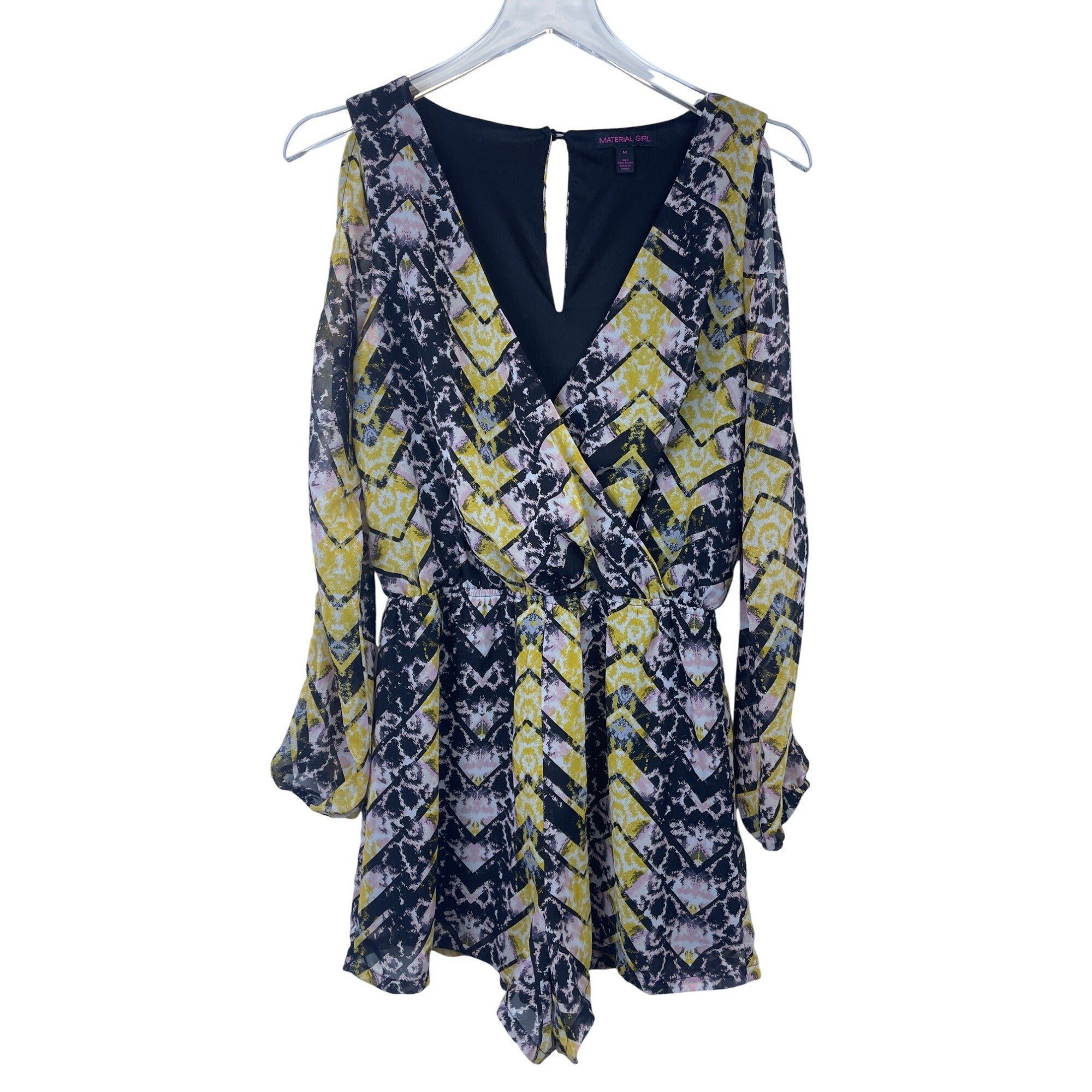 Material Girl Women’s Multicolor Printed Long Sleeve Romper M Polyester Lightweight Comfortable Stylish