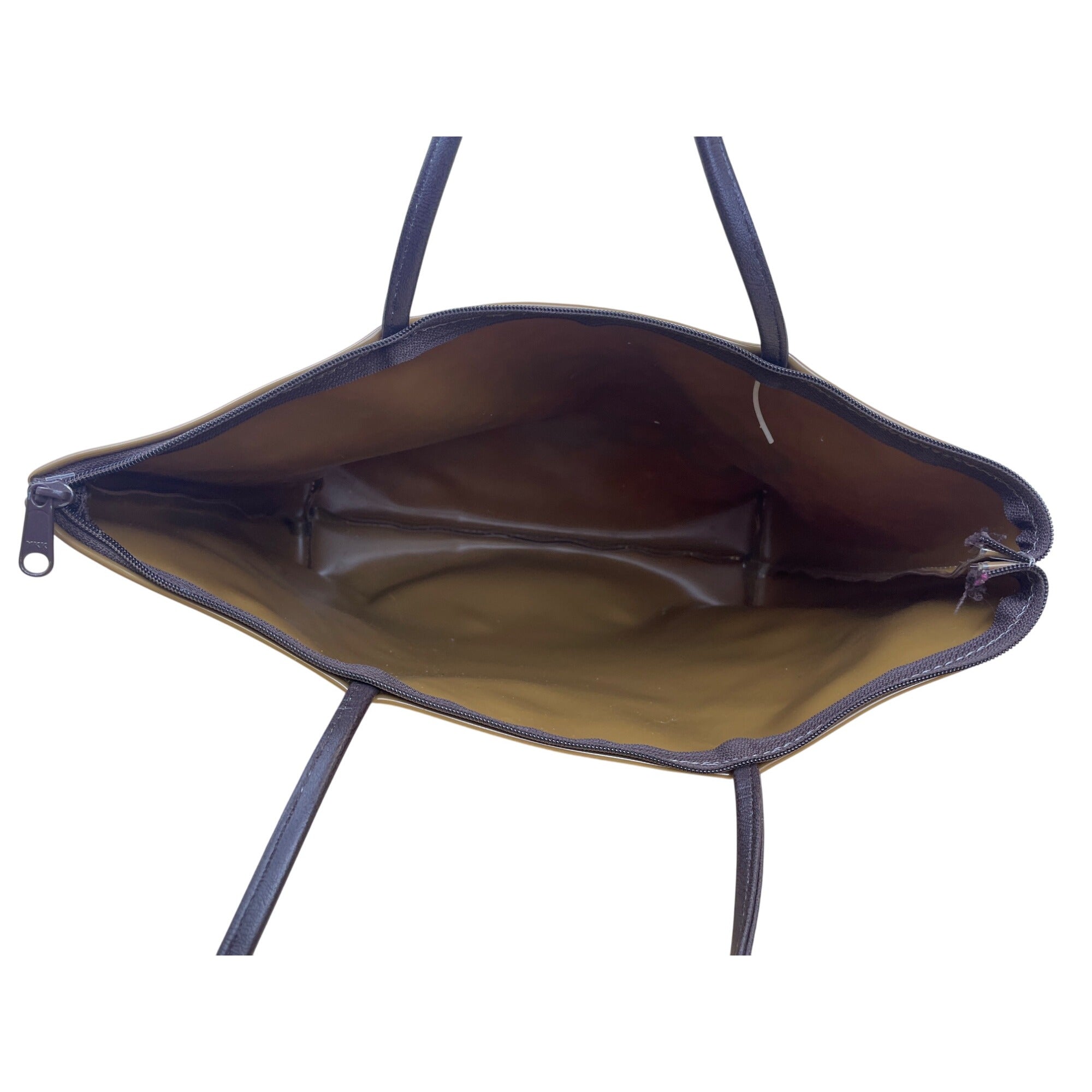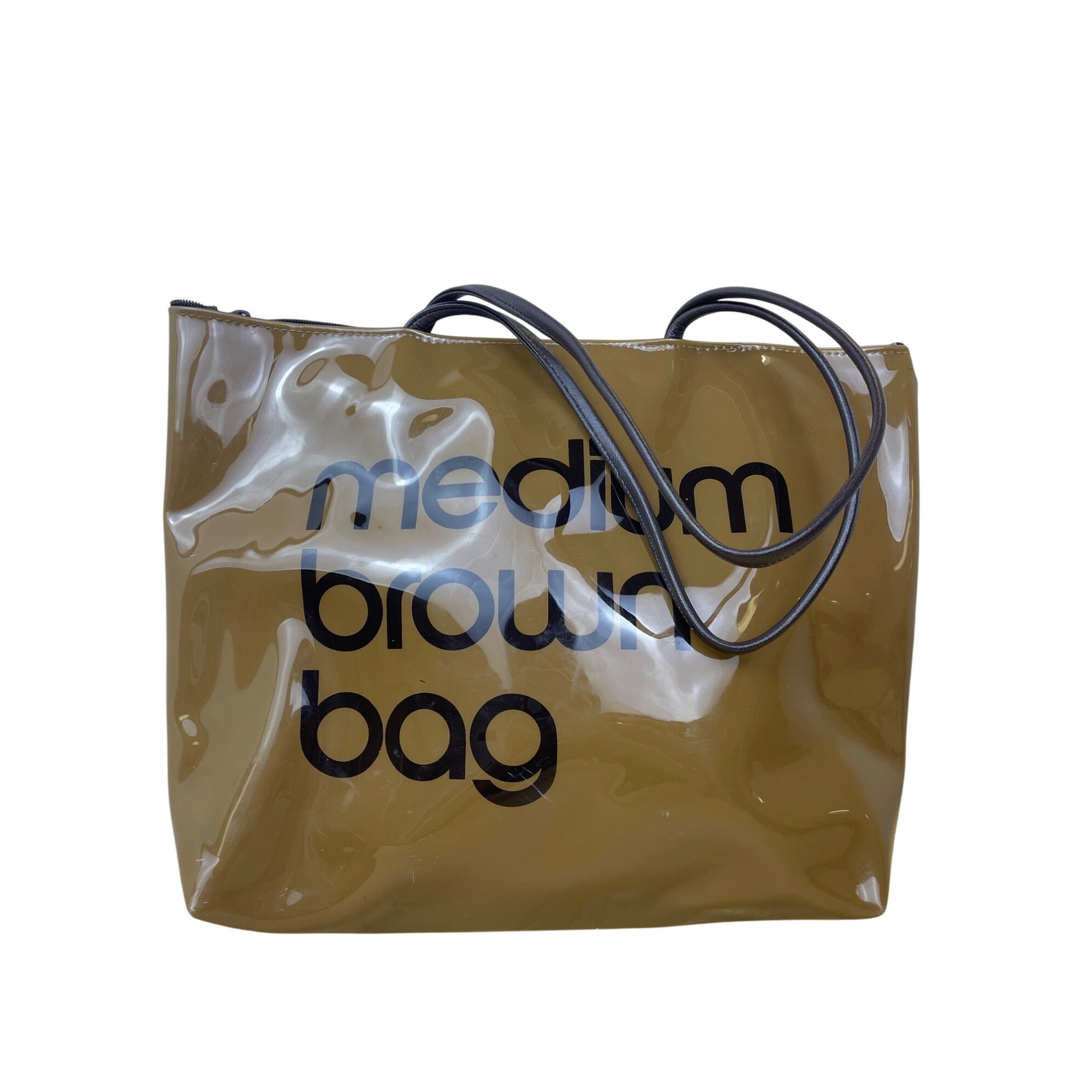 Medium Brown Bag Women’s Glossy Tote Bag Zipper Closure Stylish Durable Medium Size