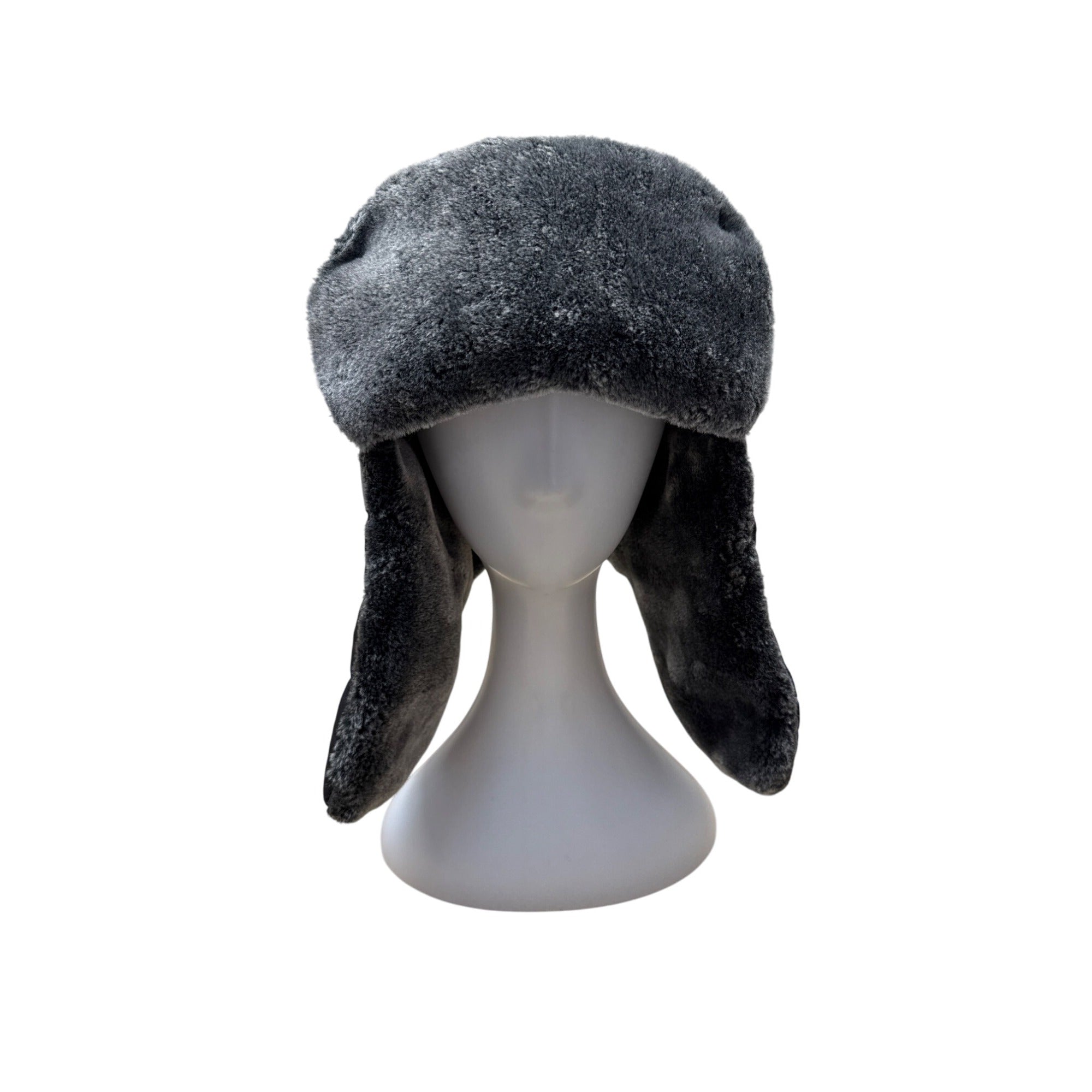 Mens Winter Black Fur-Lined Aviator Hat With Adjustable Ear Flaps & Reflective Stripe