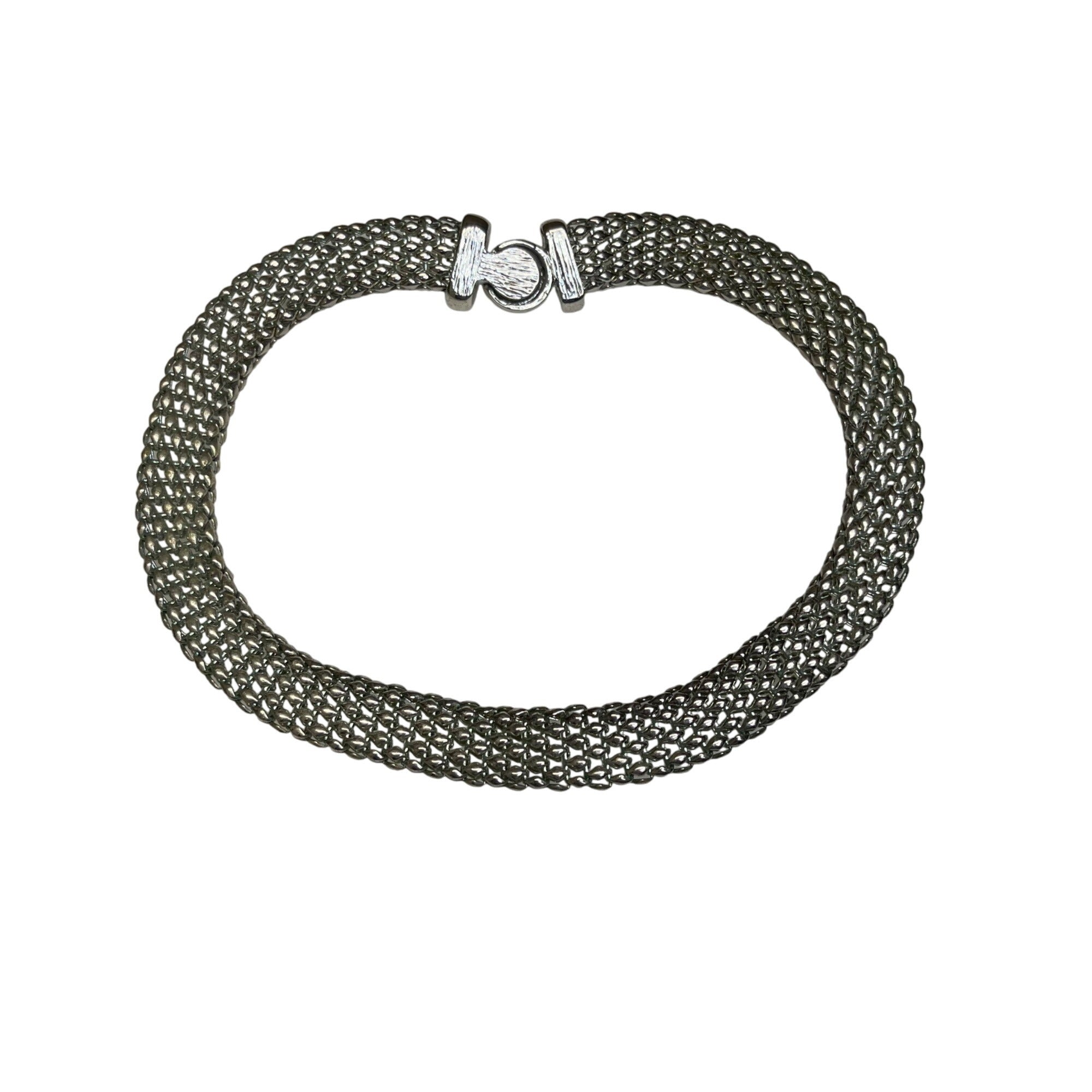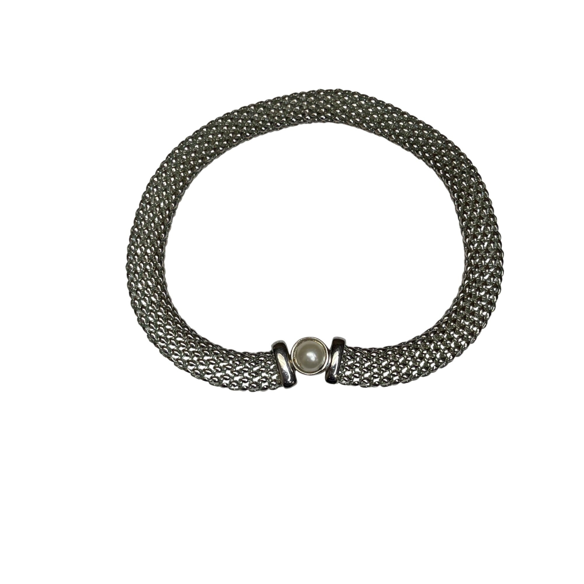 Mesh Silver-Tone Womens Bracelet With Pearl Accent Elegant Minimalist Design