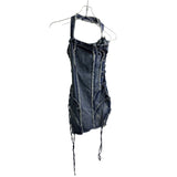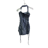 Micas Womens Blue Denim Halter Mini Dress With Raw Hem Detailing Size XS Unique Micas Womens Blue Denim Halter Mini Dress With Raw Hem Detailing Size XS Unique