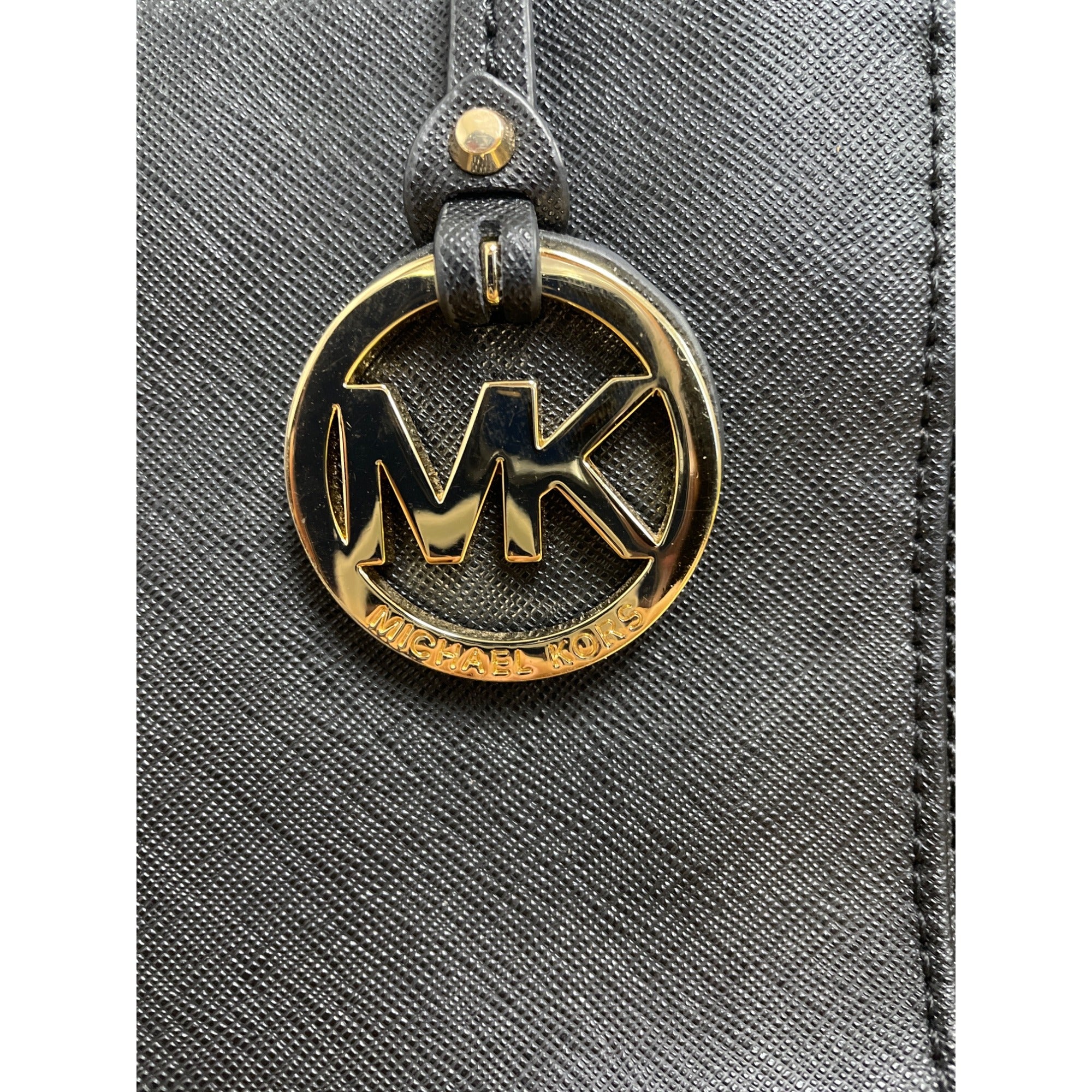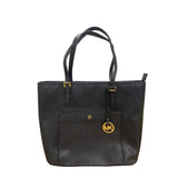 Michael Kors Black Leather Tote Bag With Gold Logo Charm & Dual Straps Medium