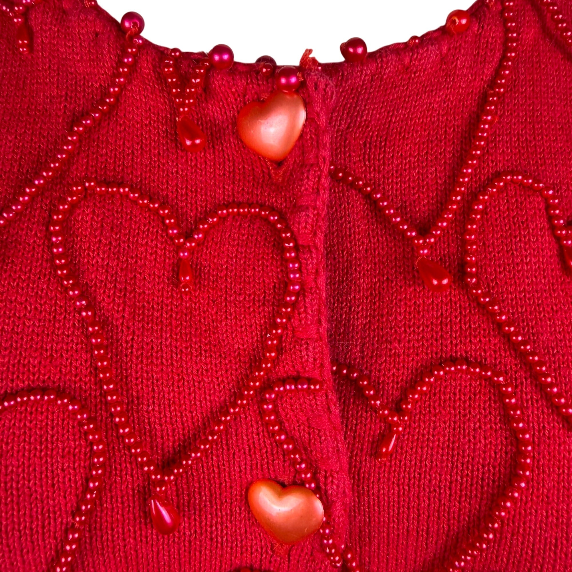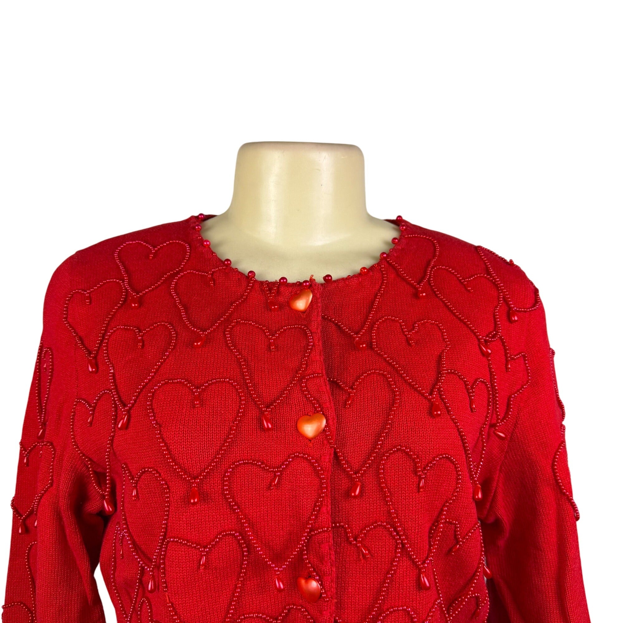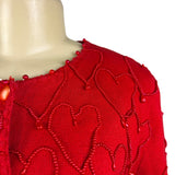 Michael Simon Red Cotton Cardigan Beaded Sequin Hearts Embellished Details Sz M
