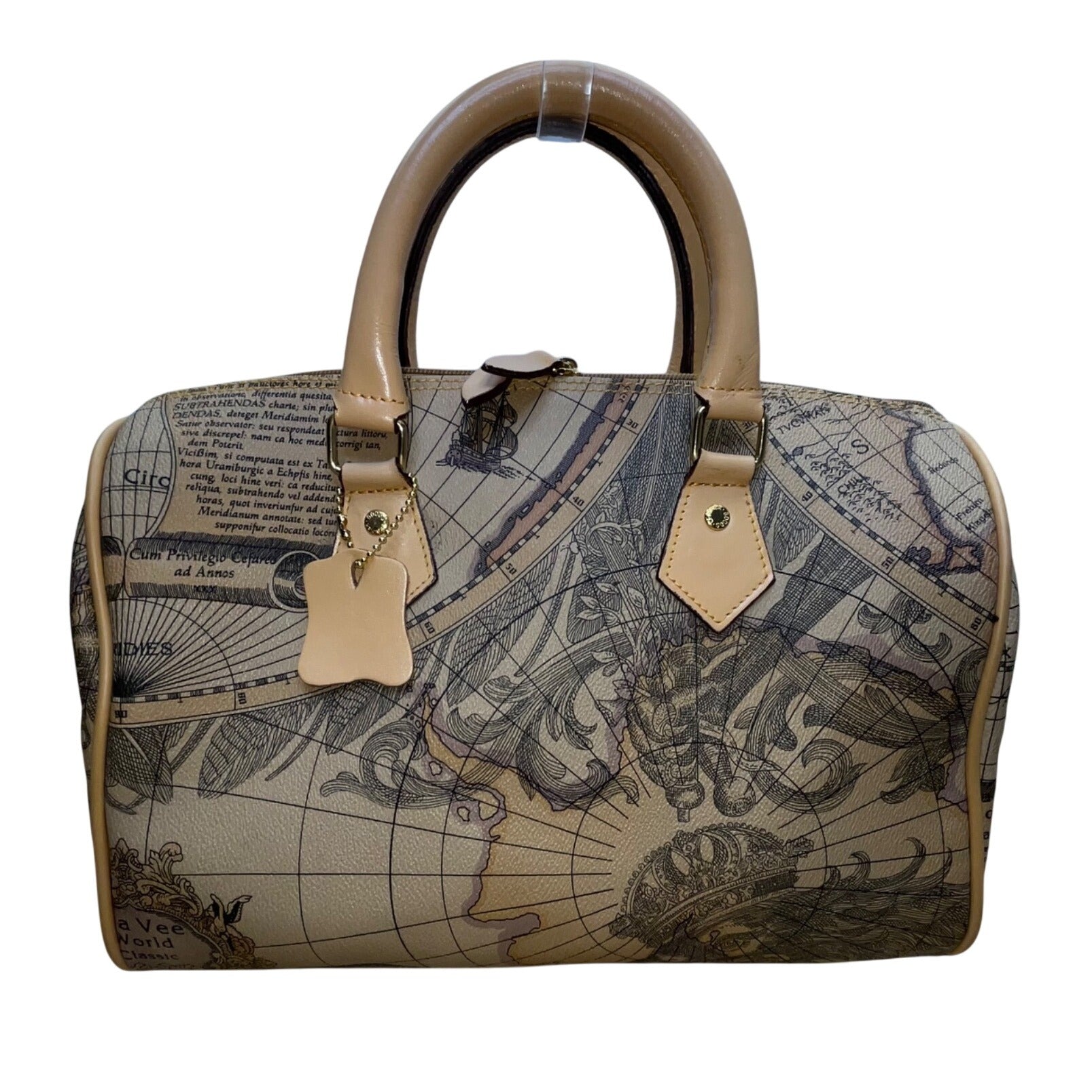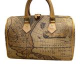 Millionaire Women’s Tan Antique Map Print Leather Via Vee World Satchel Bag