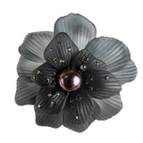 Monet Women's Black Metal Floral Brooch With Faux Pearl Center Pin Elegant Gift