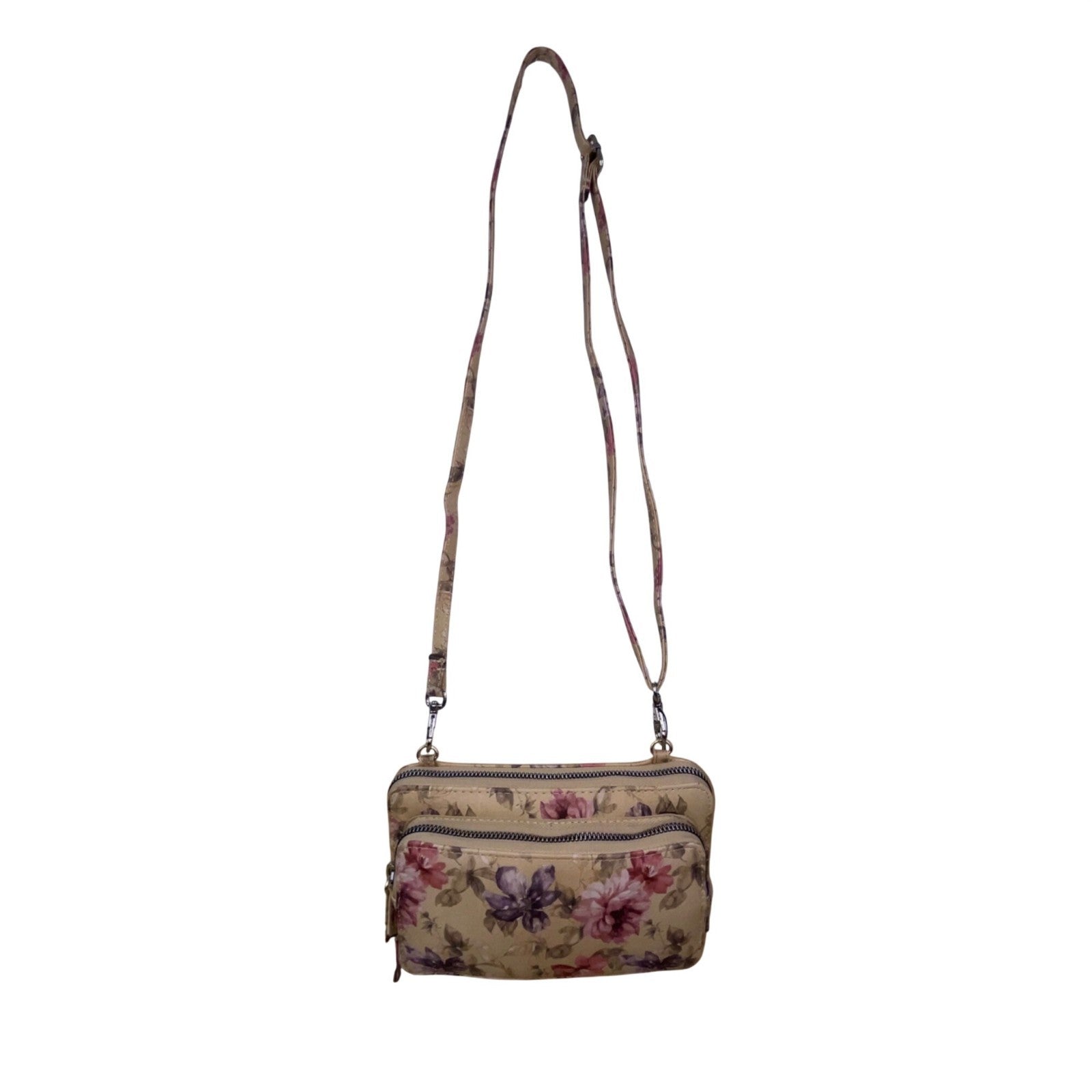 Mundi Women’s Beige Floral Faux Leather Adjustable Strap Crossbody Clutch Bag