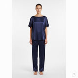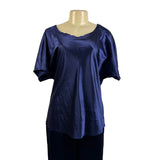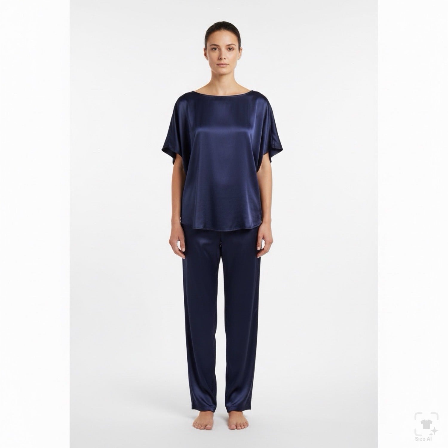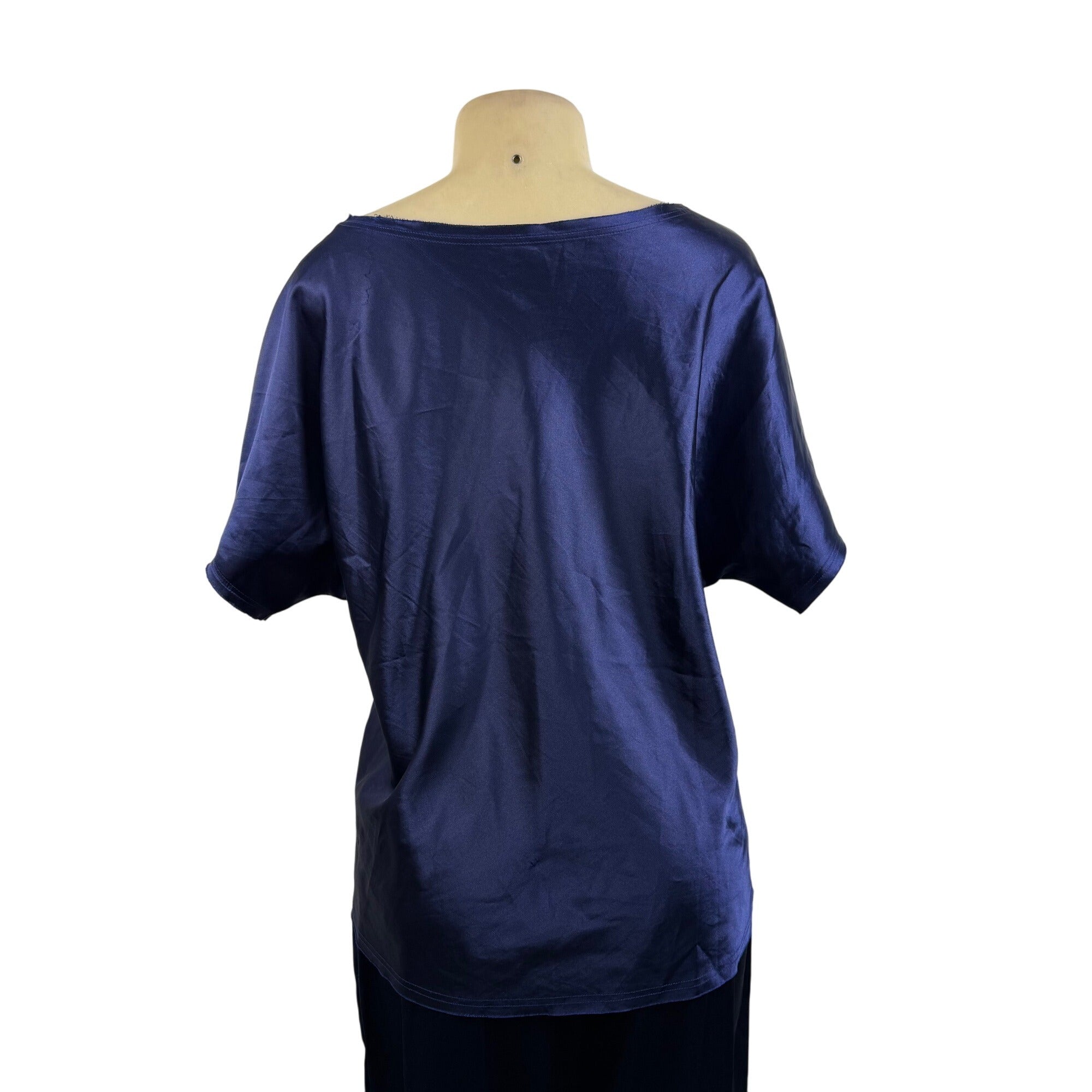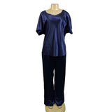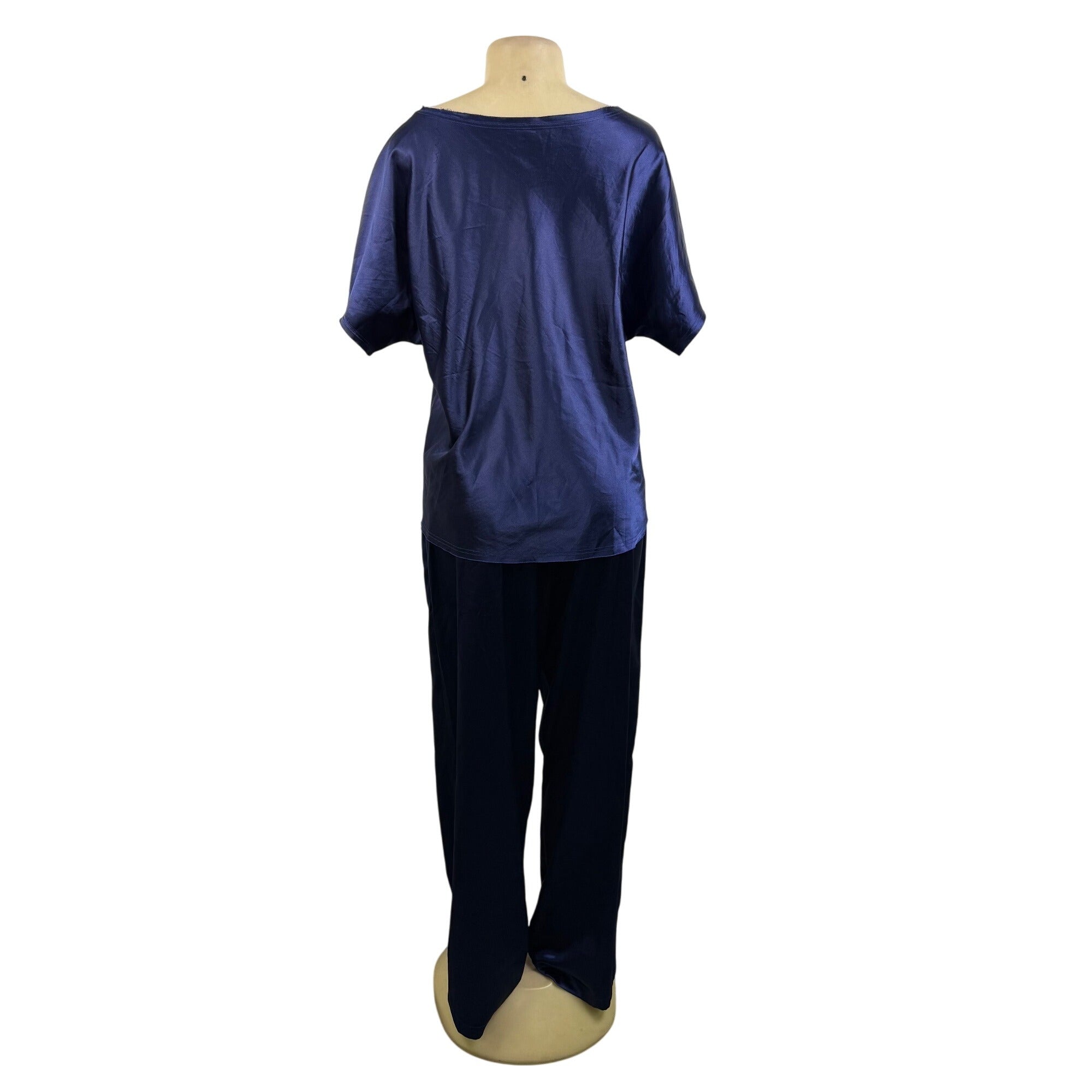 My-Bodhi Women’s Navy Satin Silk Shirt & Pants Set Loose Fit Chic Sz L/XL