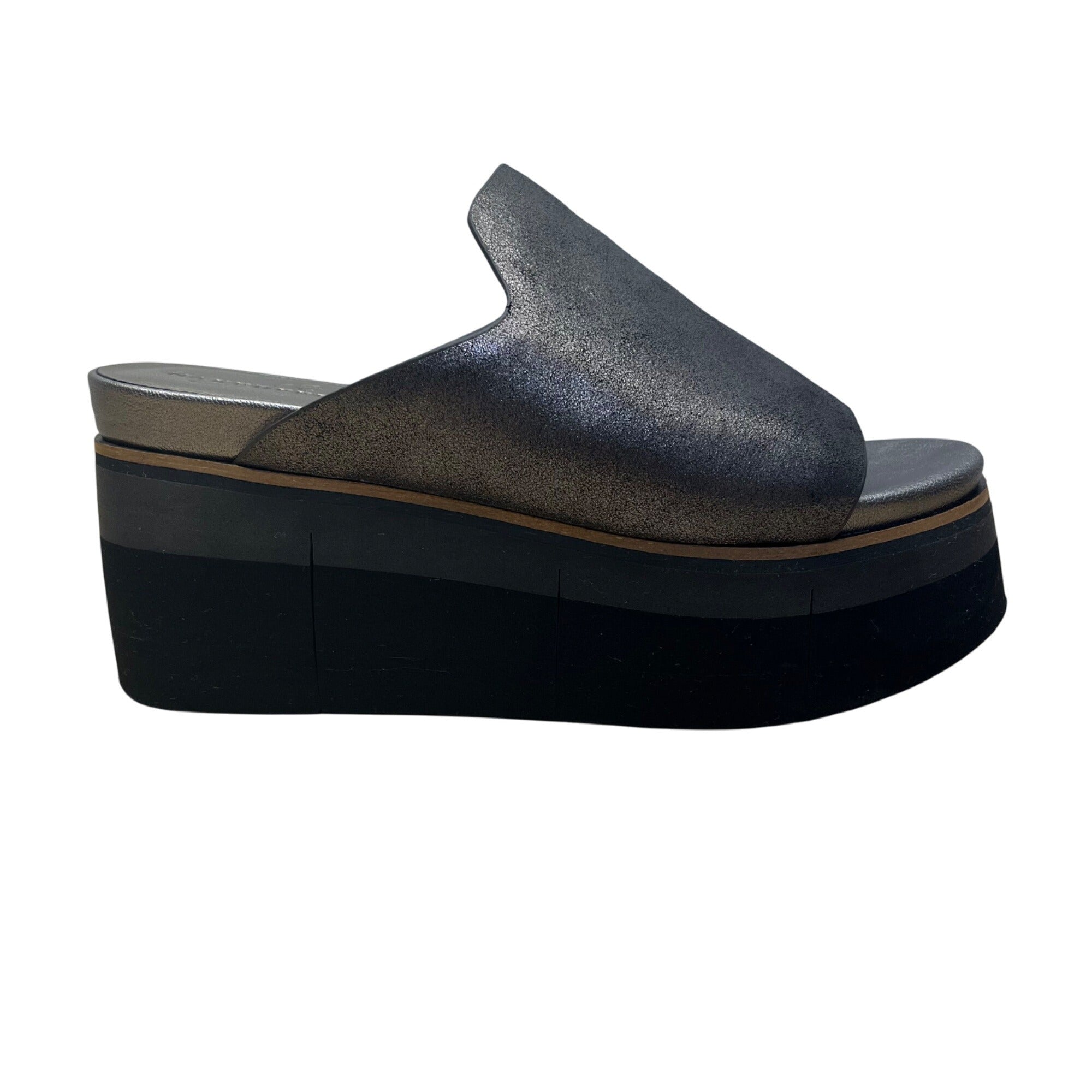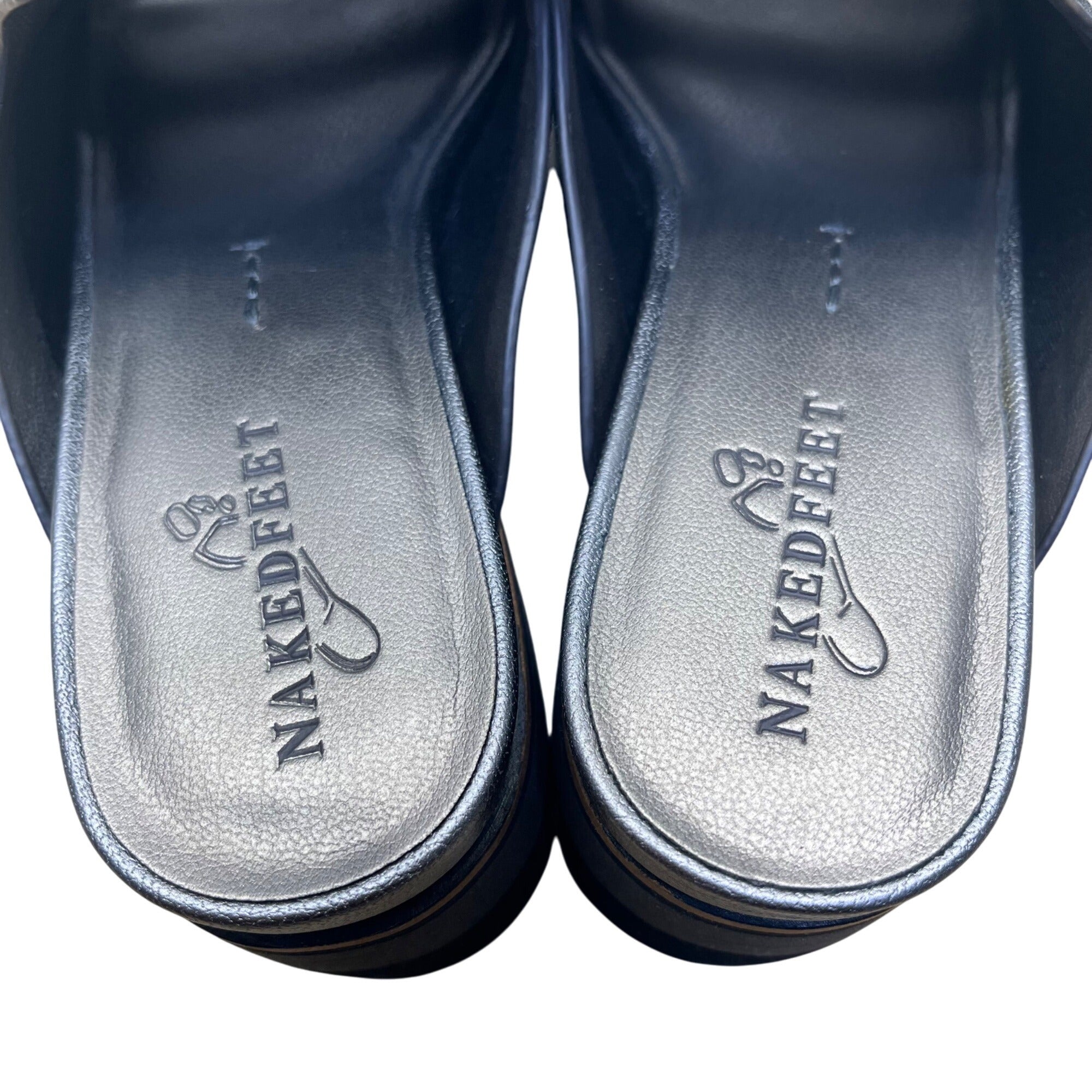Naked Feet Women’s Metallic Black Leather Upper Flow Platform Sandals Size 8M