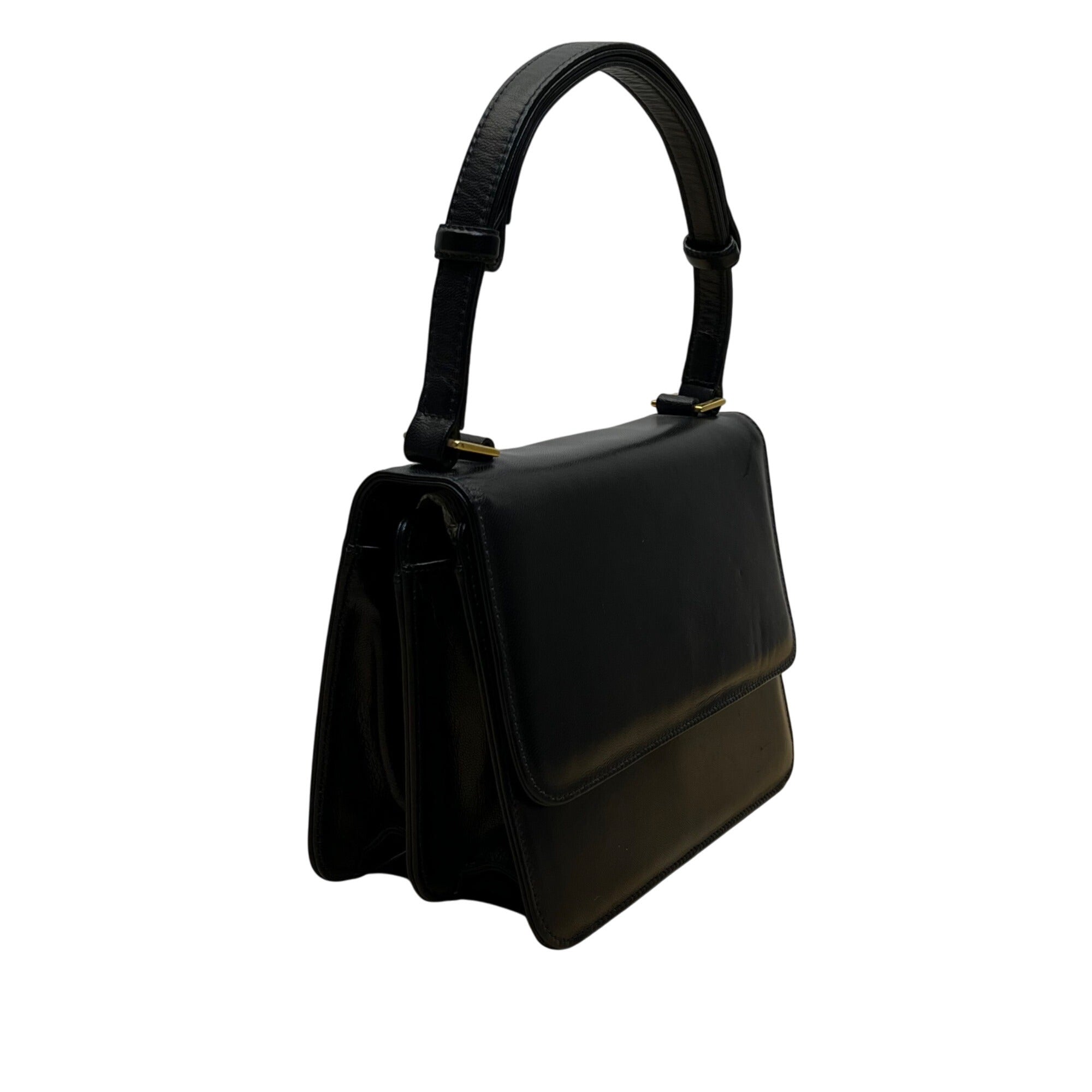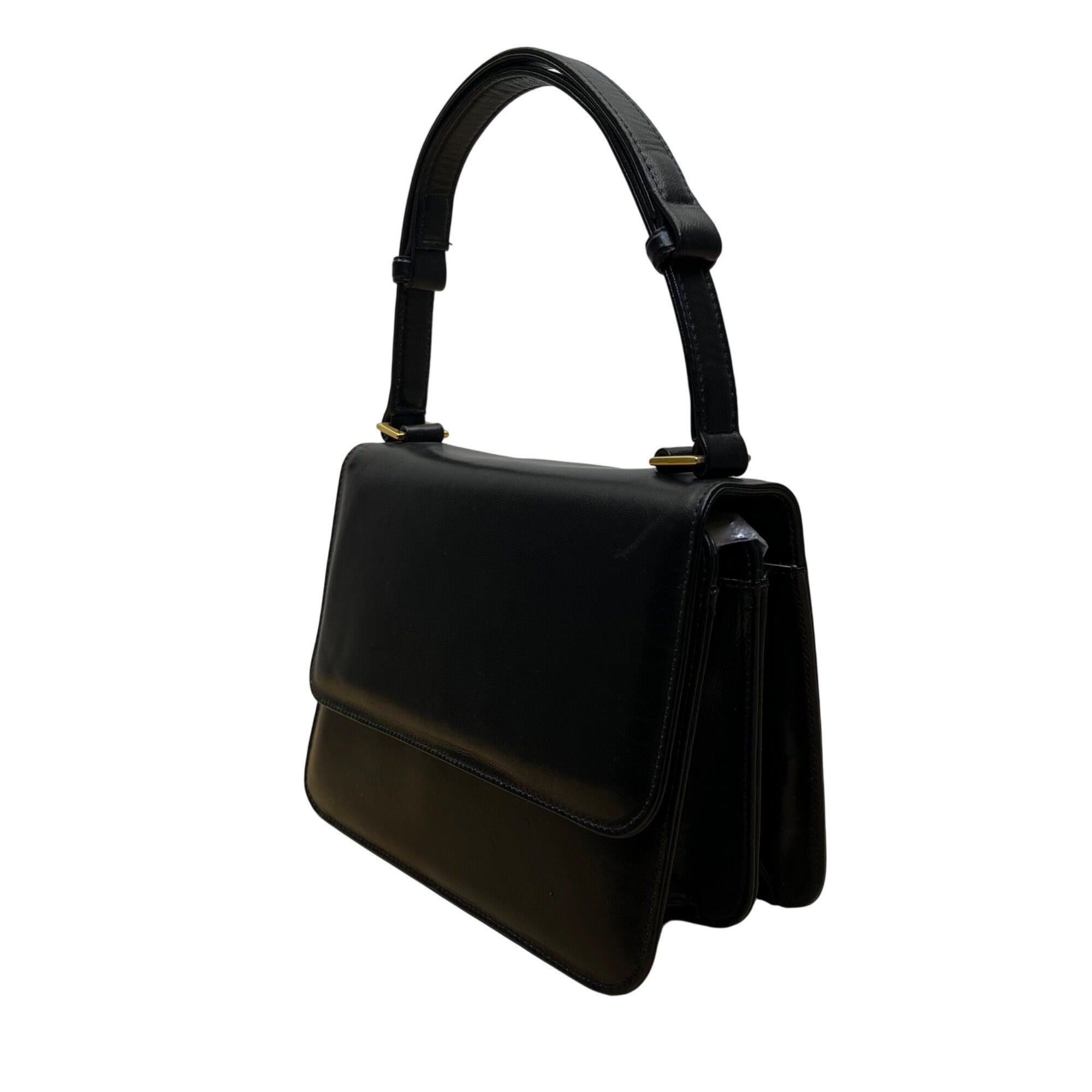 Neiman Marcus Women’s Black Leather Sophisticated Gold Accent Clutch Bag