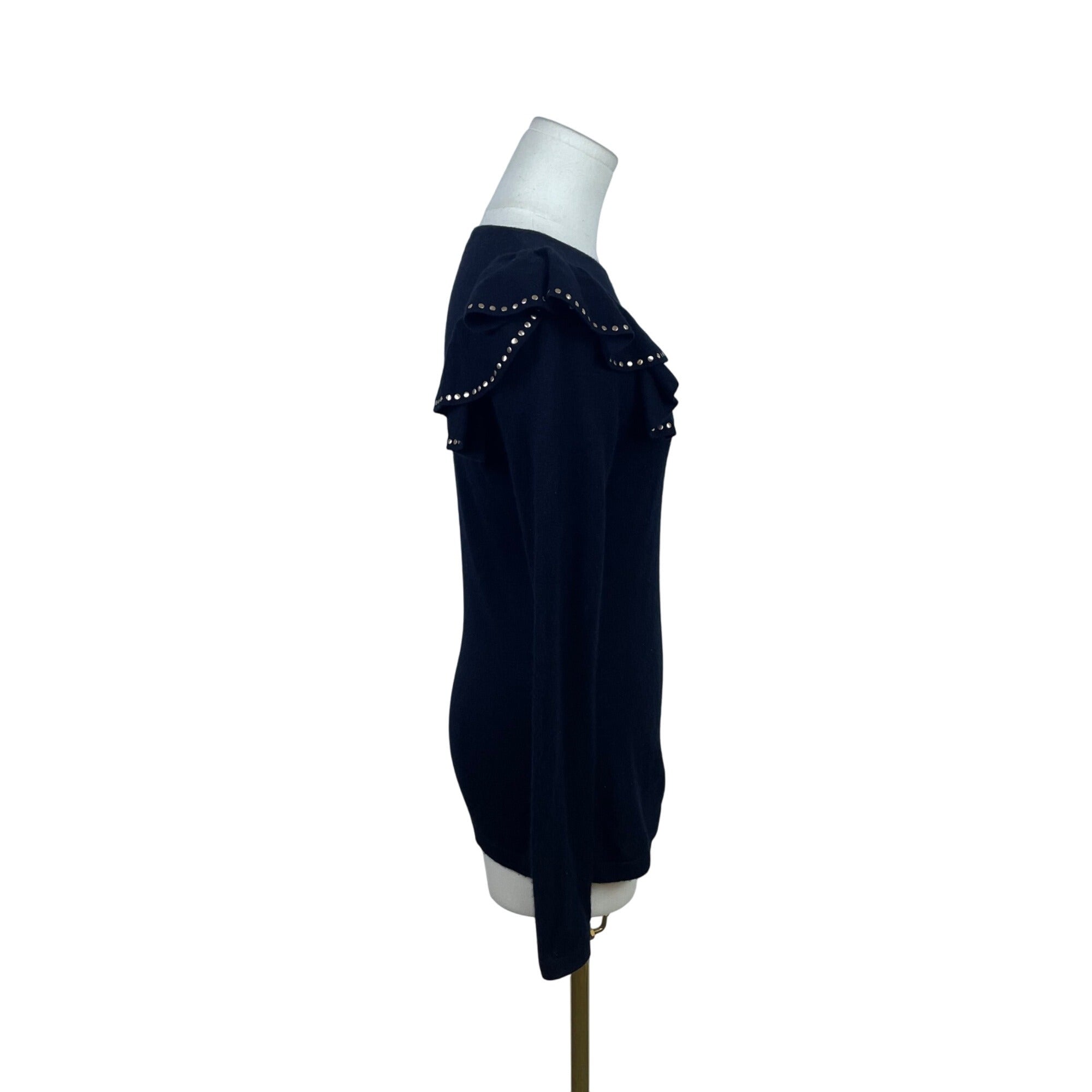Neiman Marcus Women's Black Cashmere Ruffle Sleeve Long Sleeve Sweater Size S