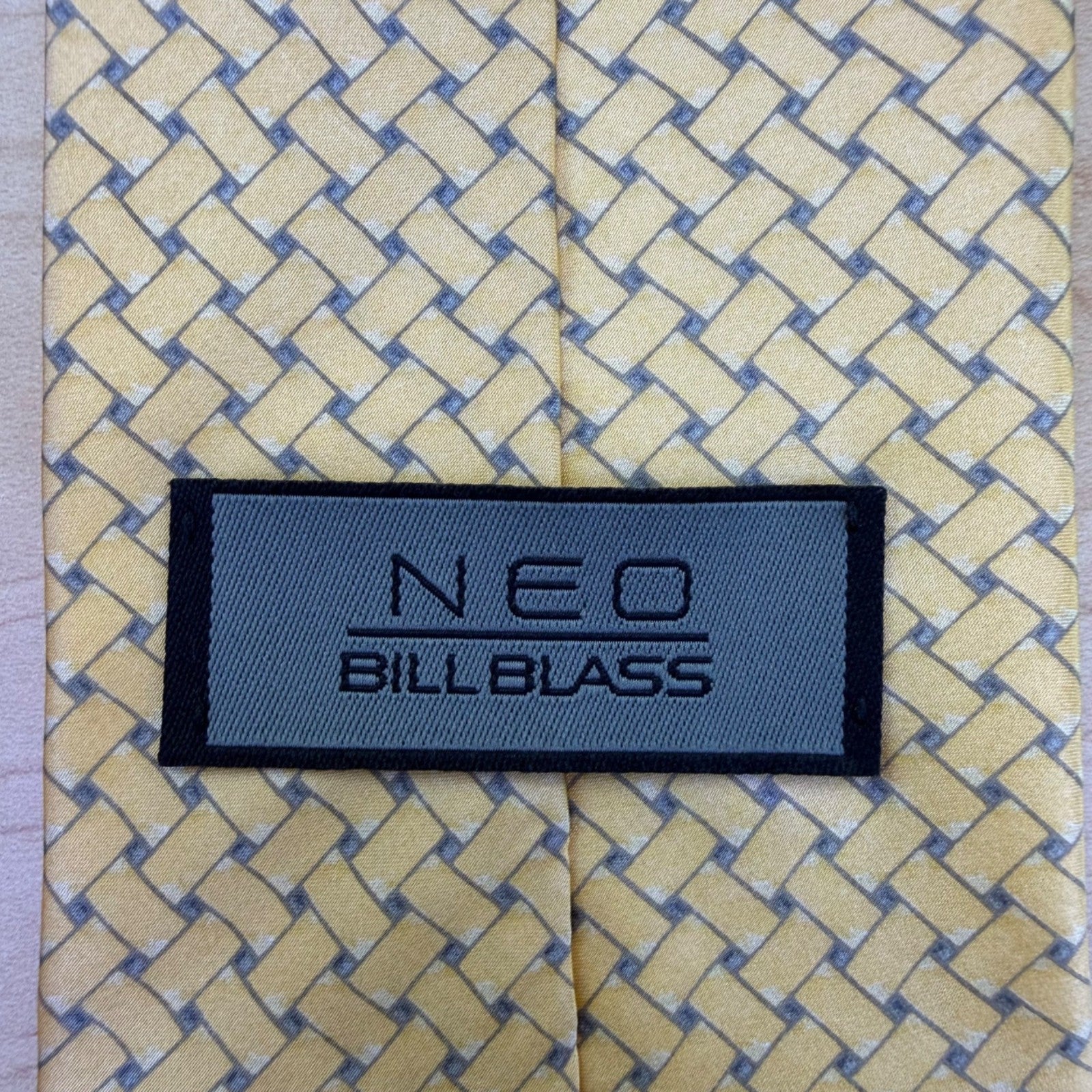 Neo By Bill Blass Mens Yellow 100% Silk Patterned Woven Tie Formalwear
