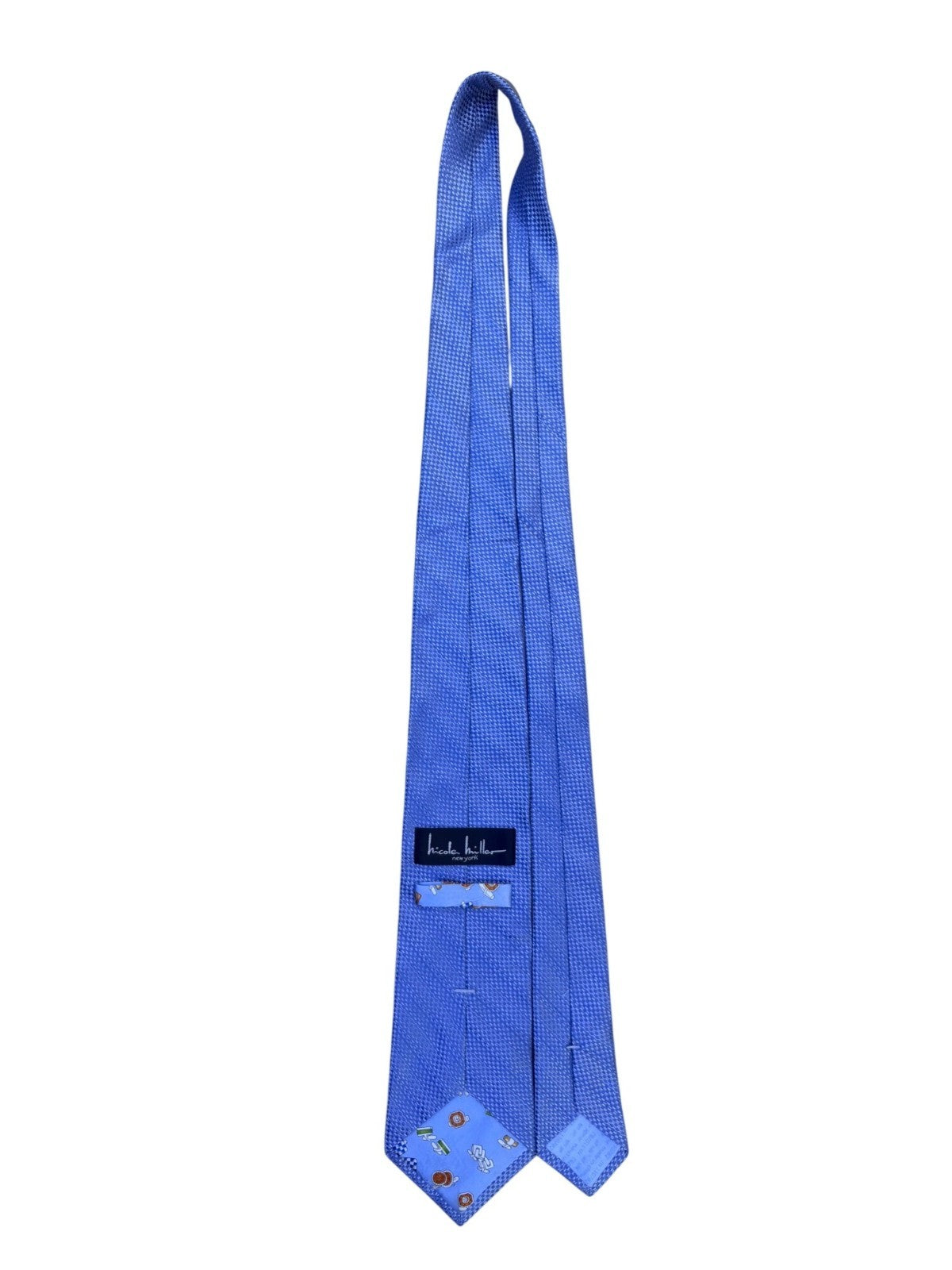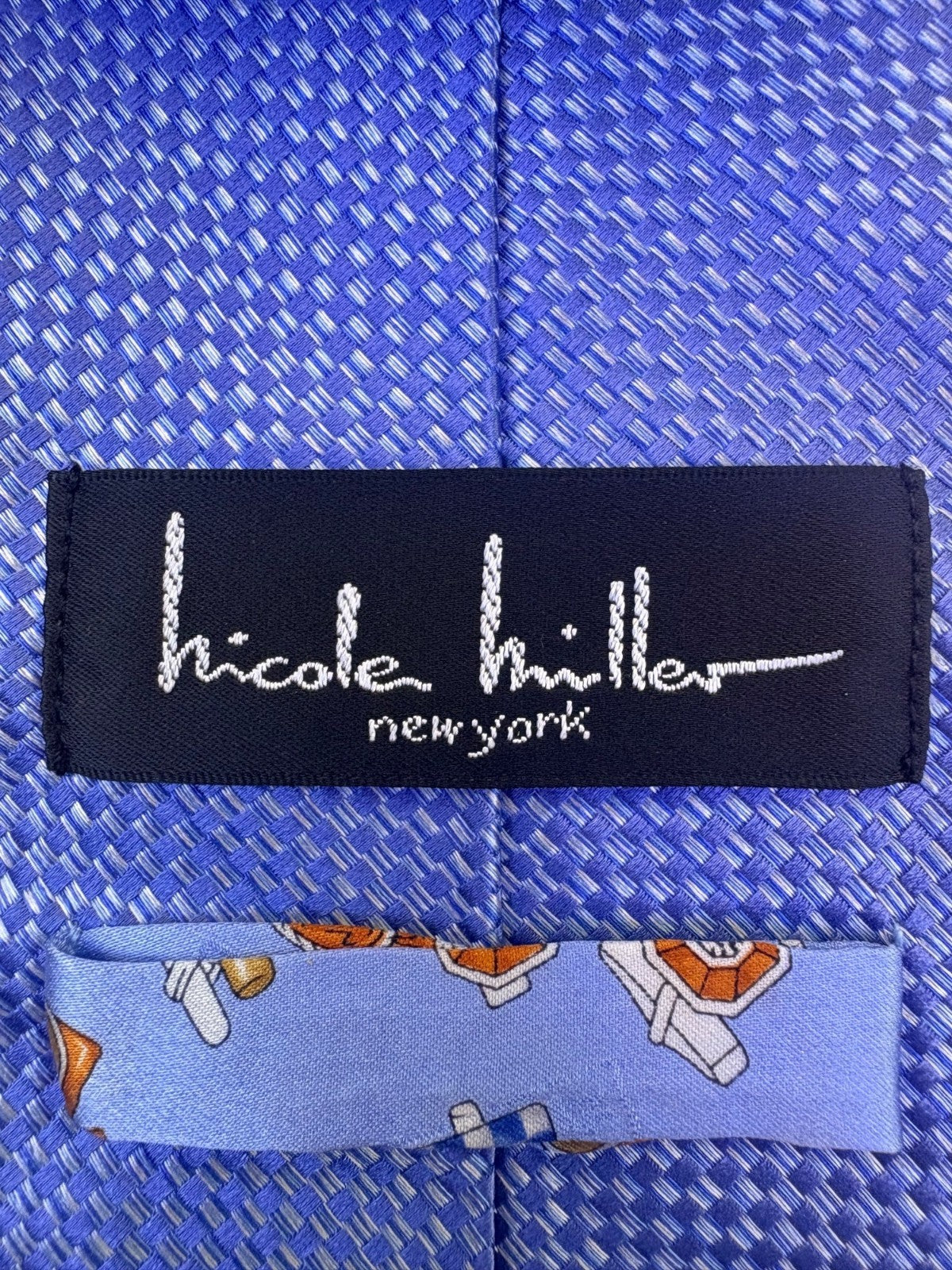 Nicole Miller Mens Blue Silk Necktie Woven Pattern 58" Length Unique Design