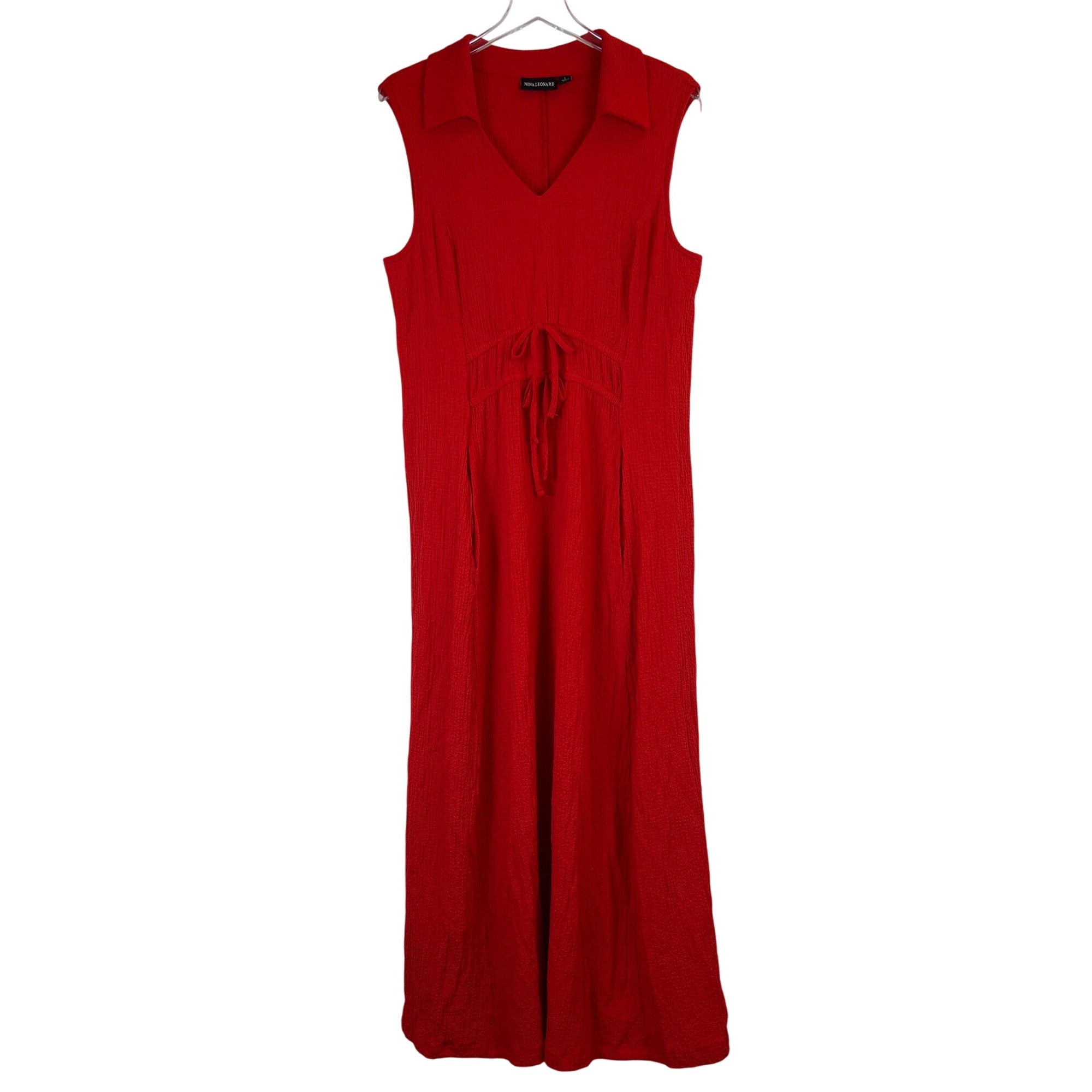 Nina Leonard Womens Red Sleeveless Textured Maxi Dress With Tie Waist And Collar Large