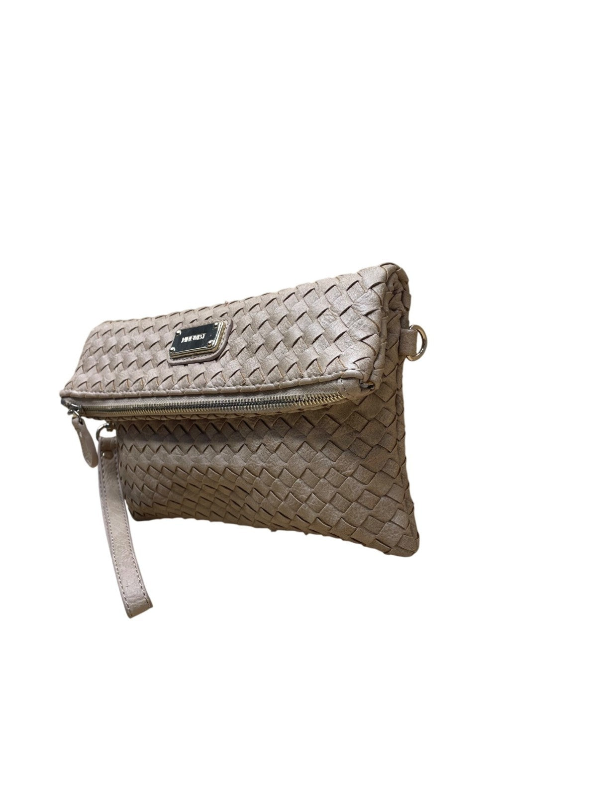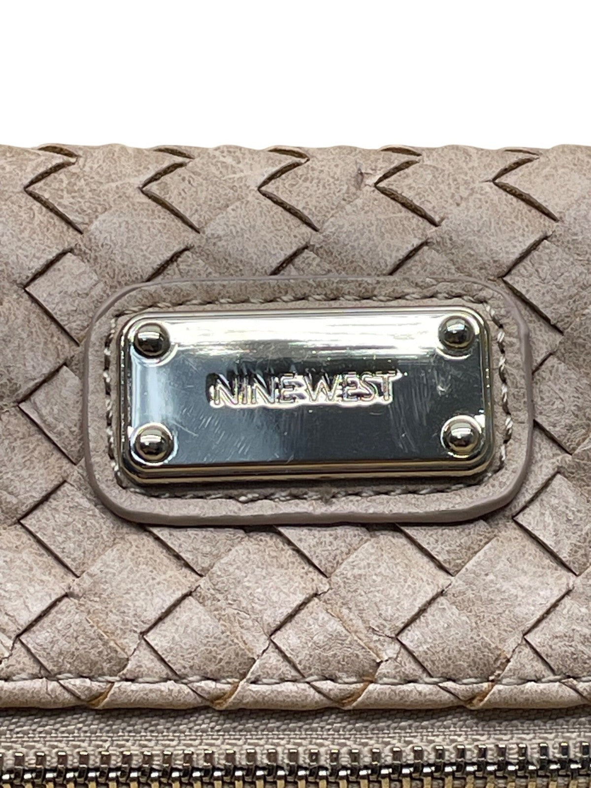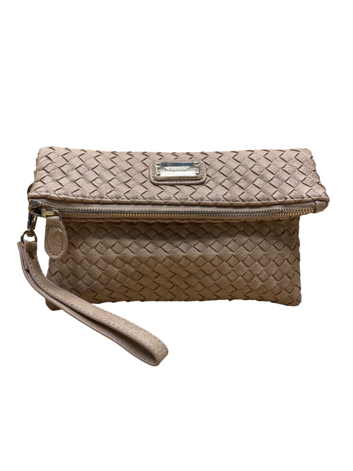 Nine West Women’s Brown Woven Faux Leather Zip Closure Foldover Clutch Bag