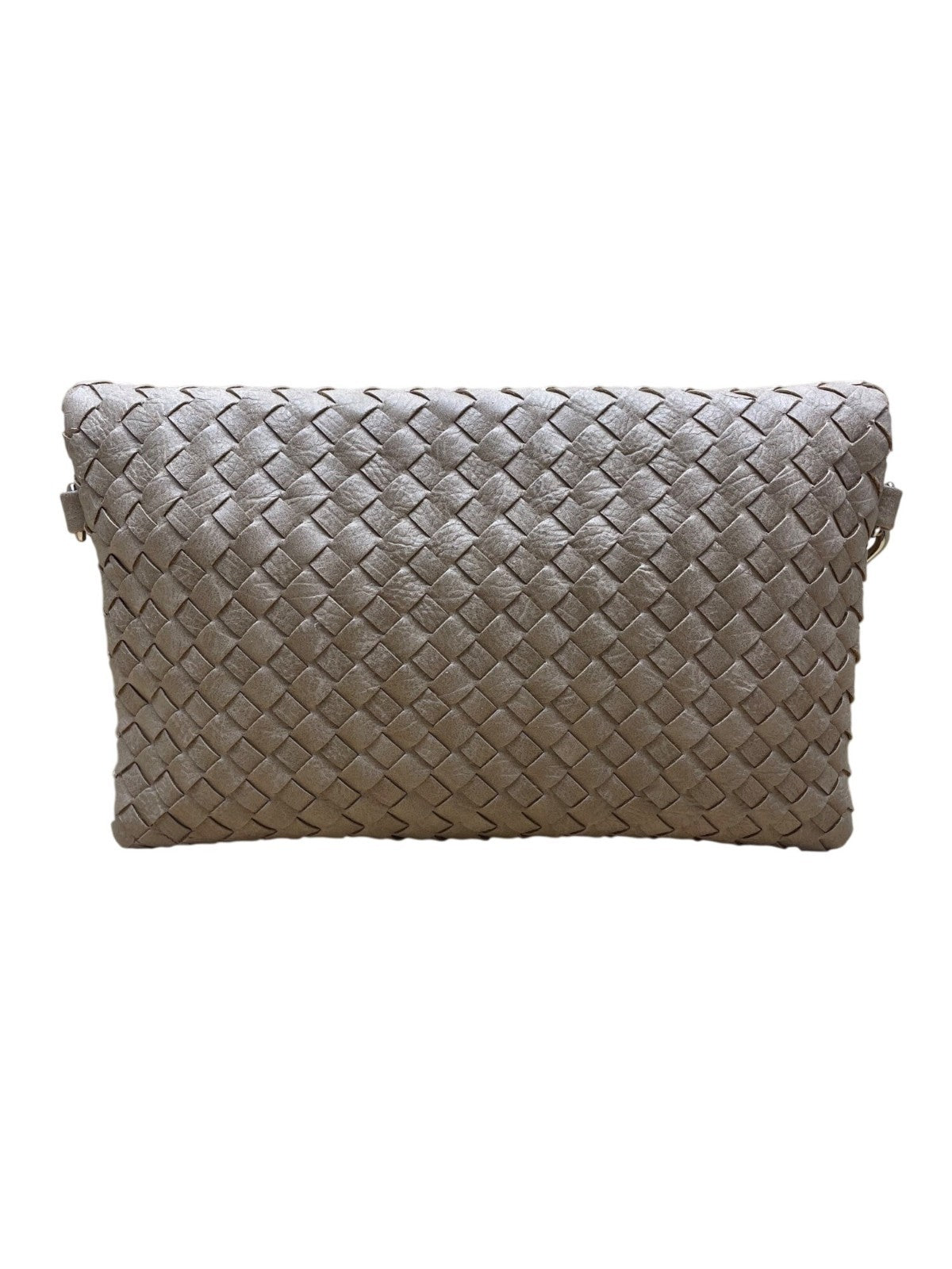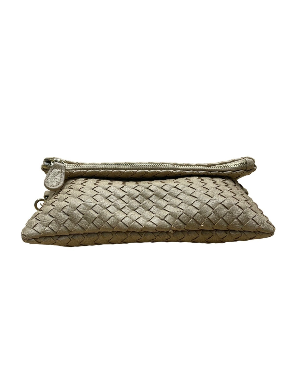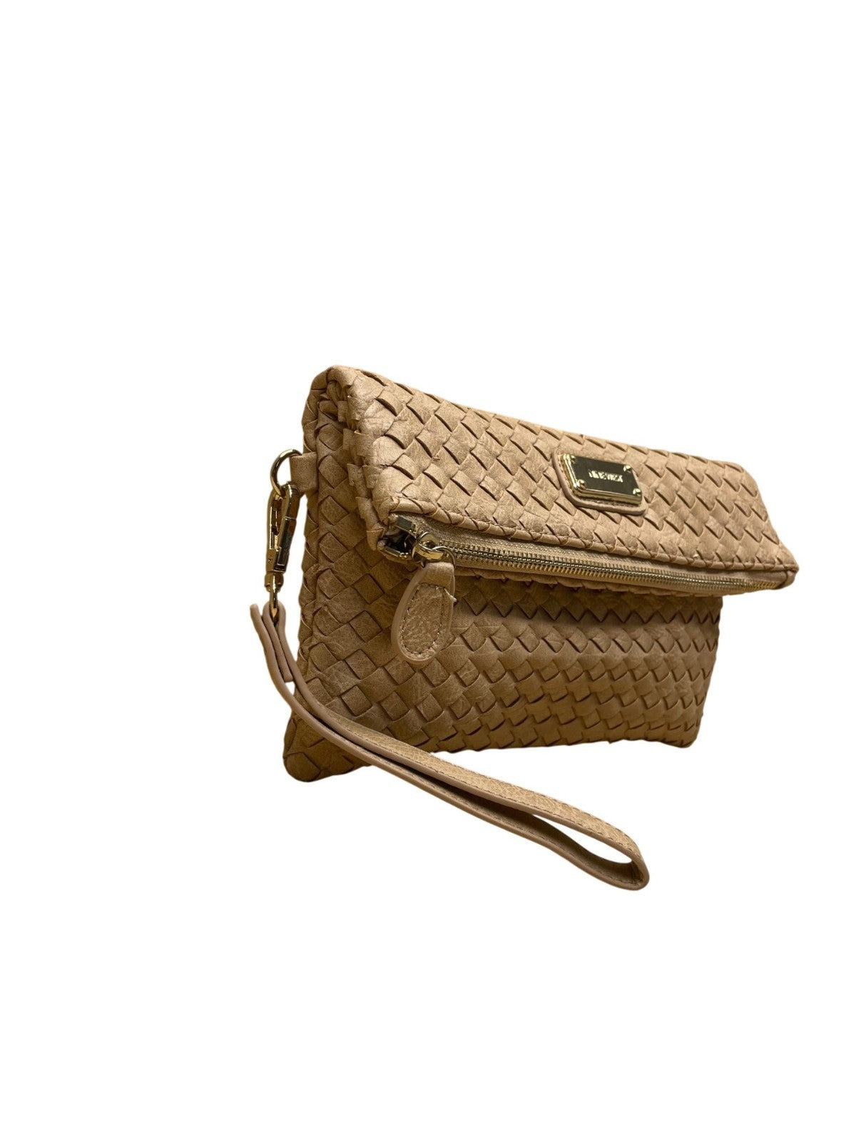 Nine West Women’s Brown Woven Faux Leather Zip Closure Foldover Clutch Bag