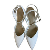 Not Just A Pump Womens White Patent Leather Heels Ankle Strap Pointed Toe Size 7