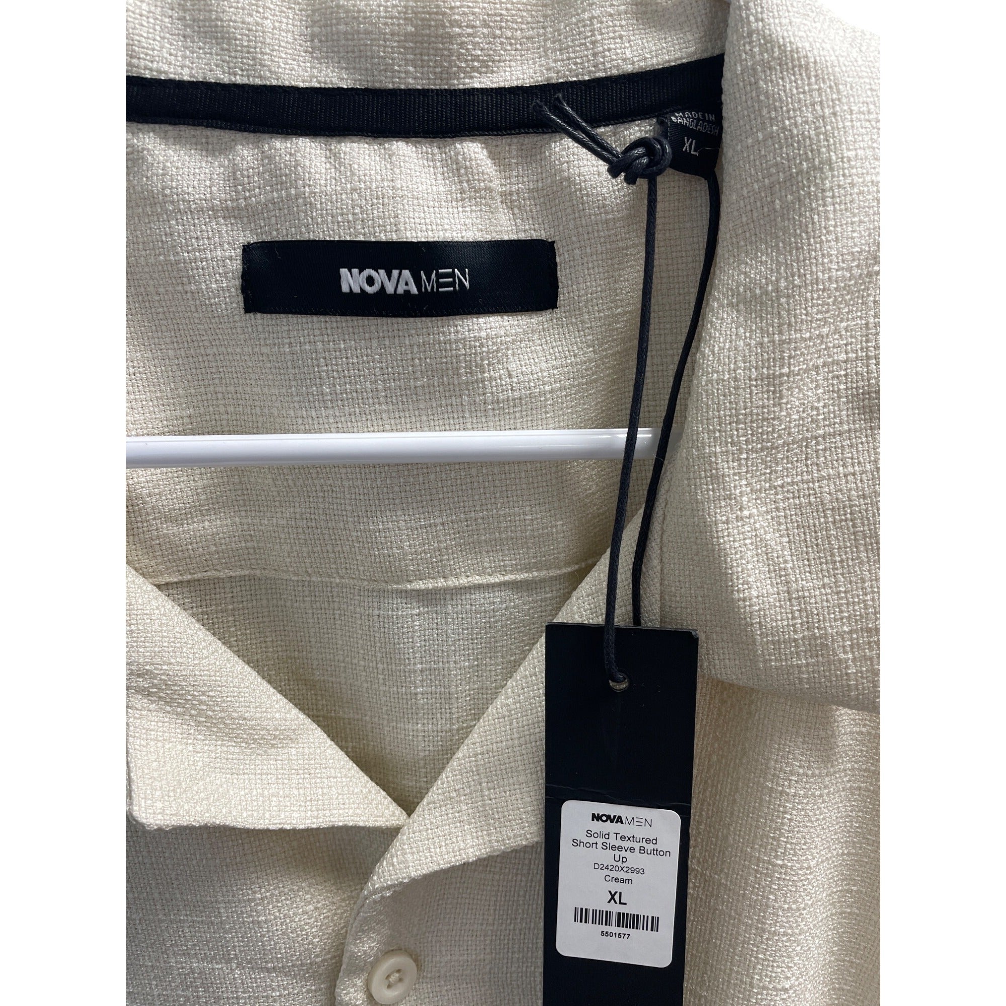 Nova Men Cream Textured Short Sleeve Button-Up Mens Shirt XL