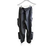 Nylon Mens Gray Multi-Pocket Tactical Cargo Pants With Drawstring Waist And Cuffs Lightweight