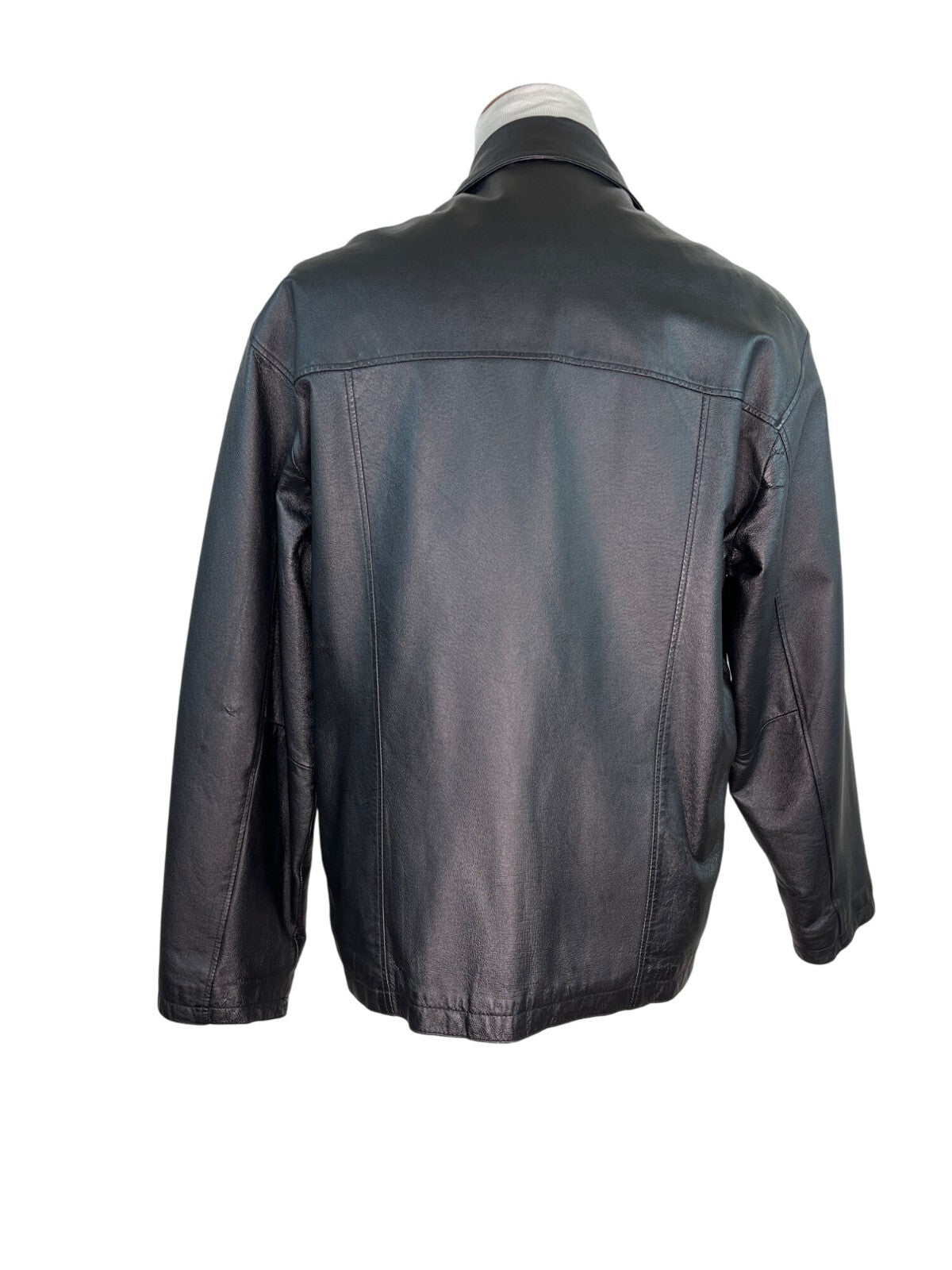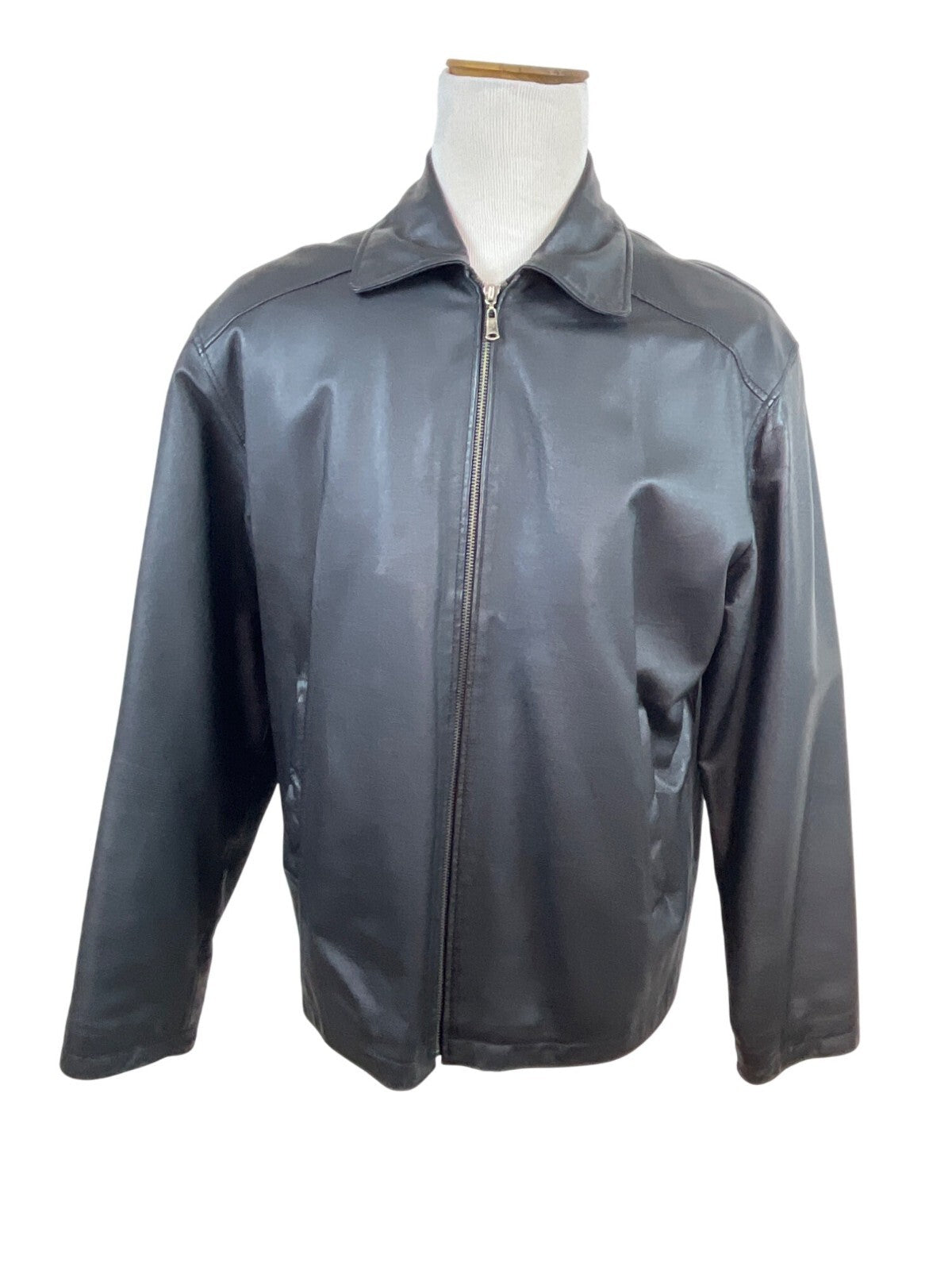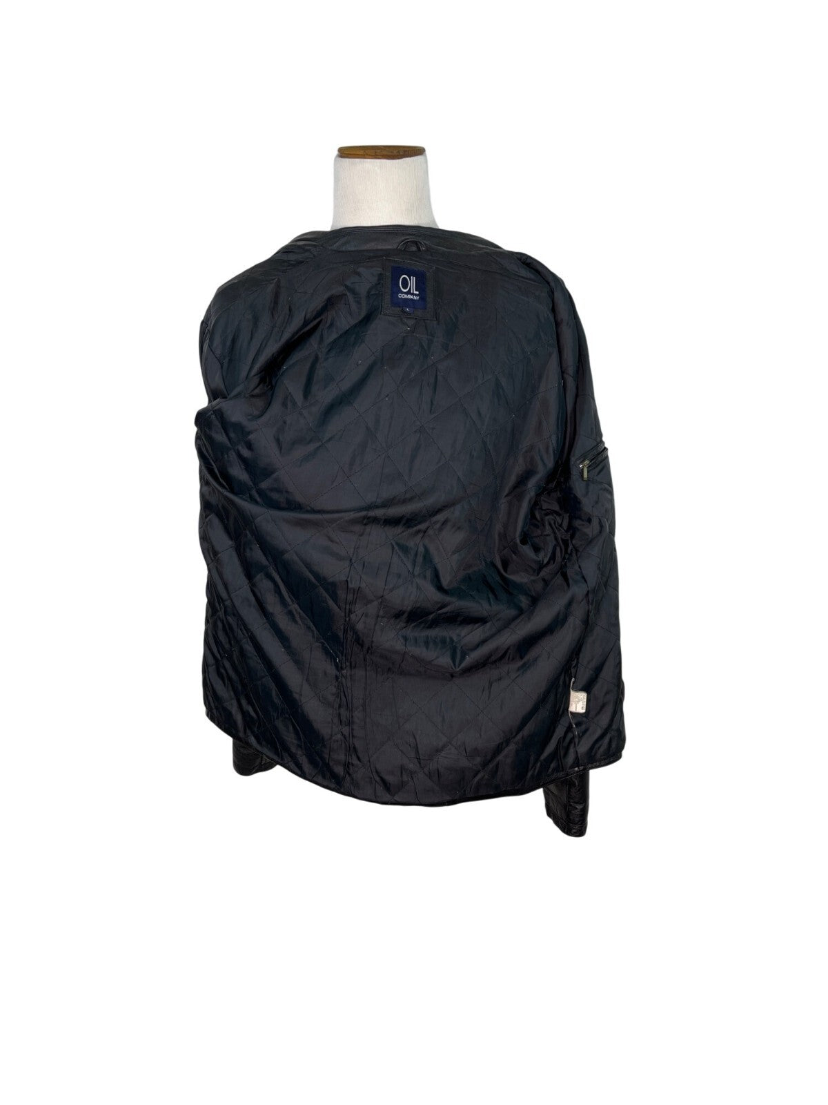 Oil Company Mens Black Leather Jacket With Front Zip & Side Pockets Size L