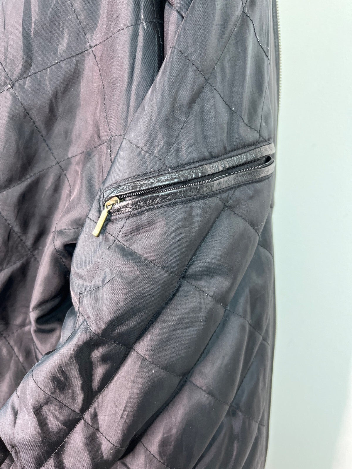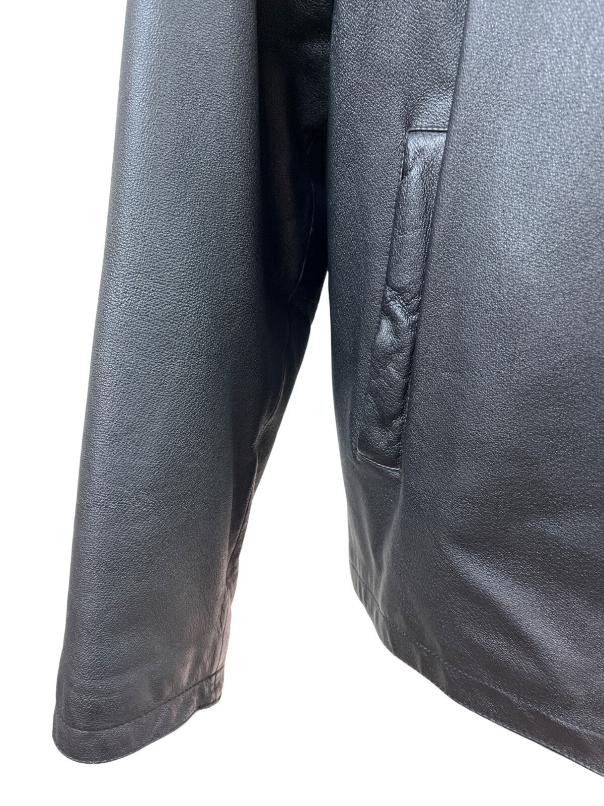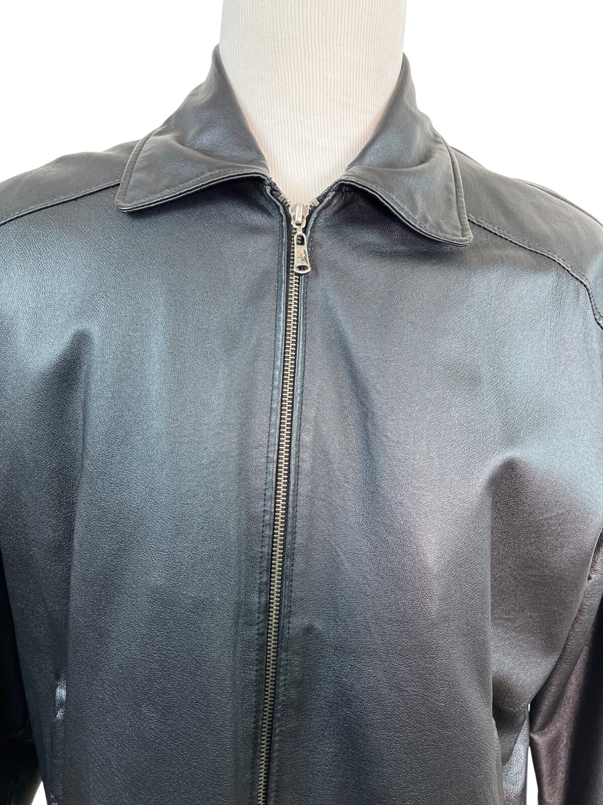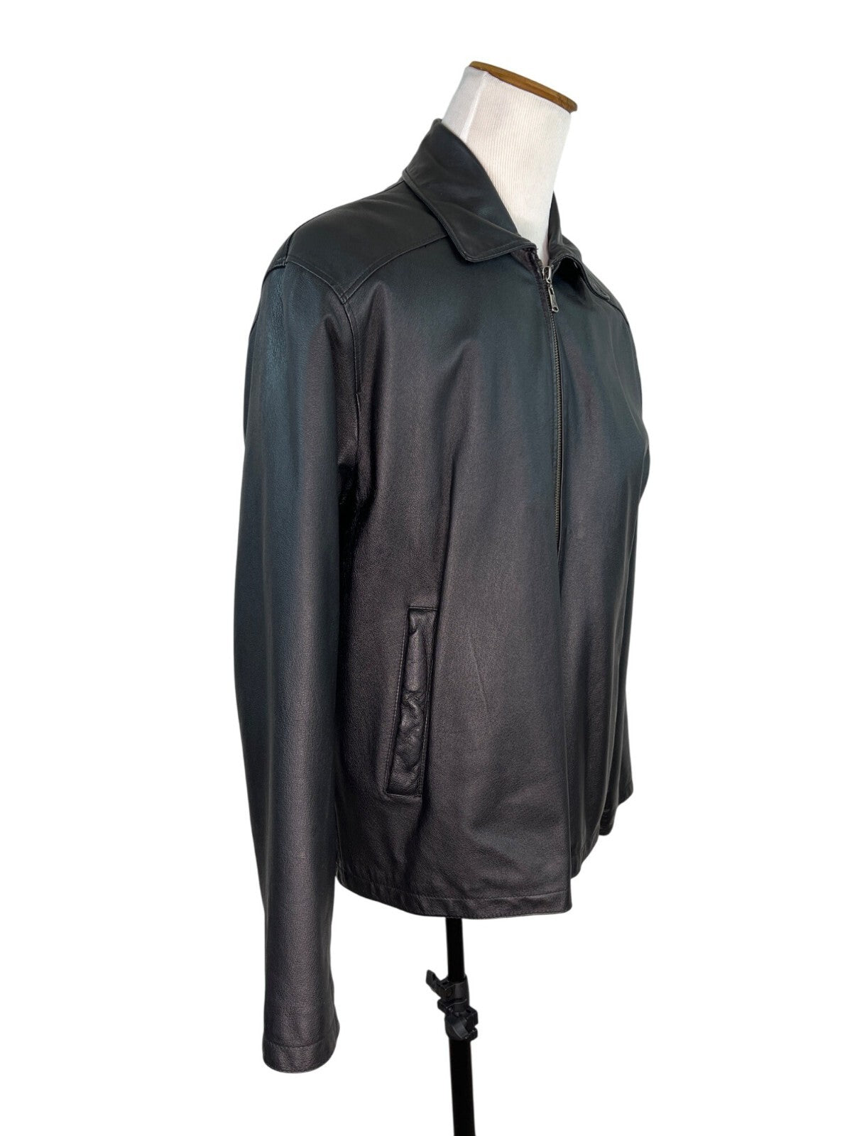 Oil Company Mens Black Leather Jacket With Front Zip & Side Pockets Size L