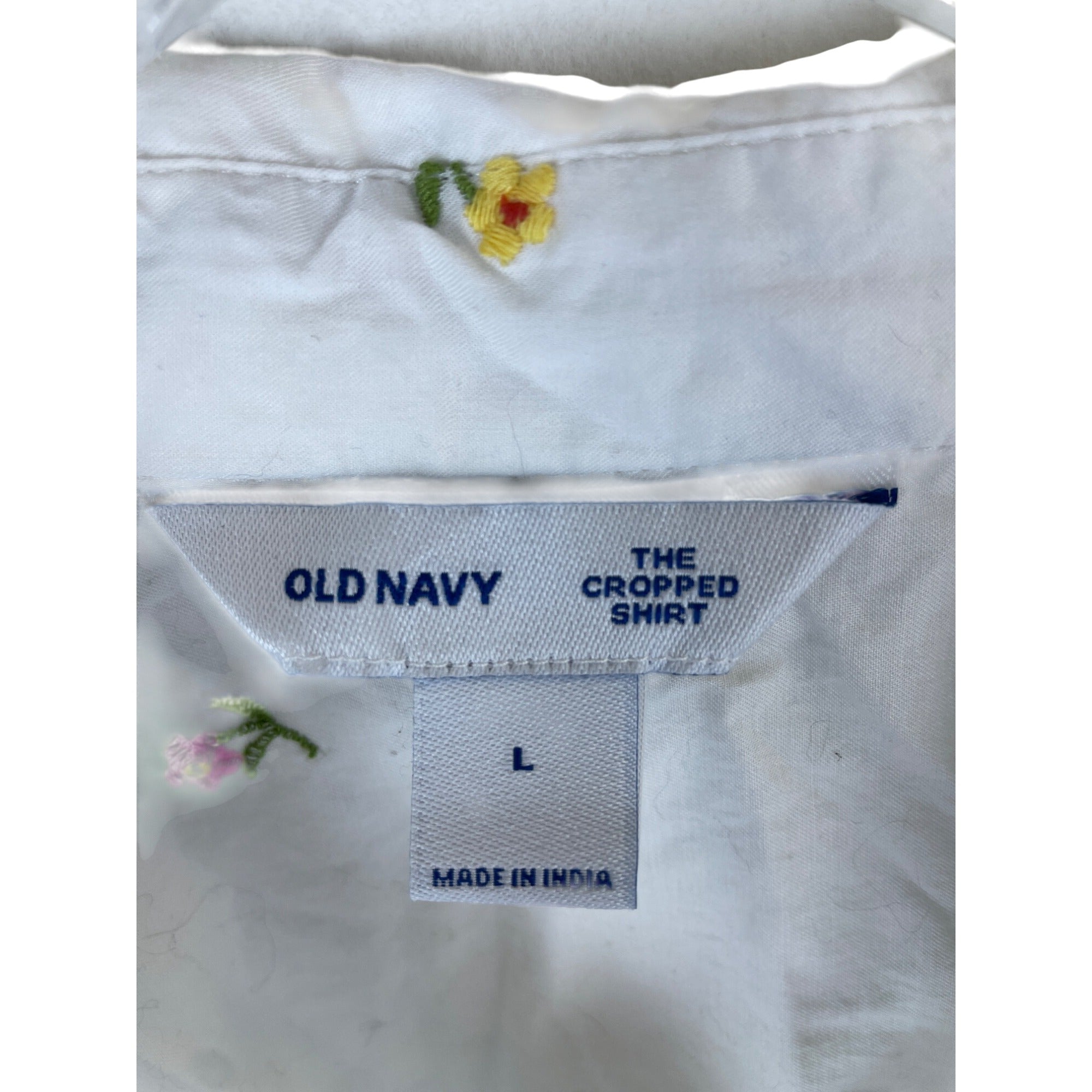 Old Navy Womens White Cotton Embroidered Floral Cropped Button-Up Shirt Size L