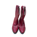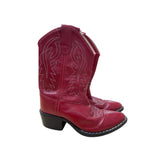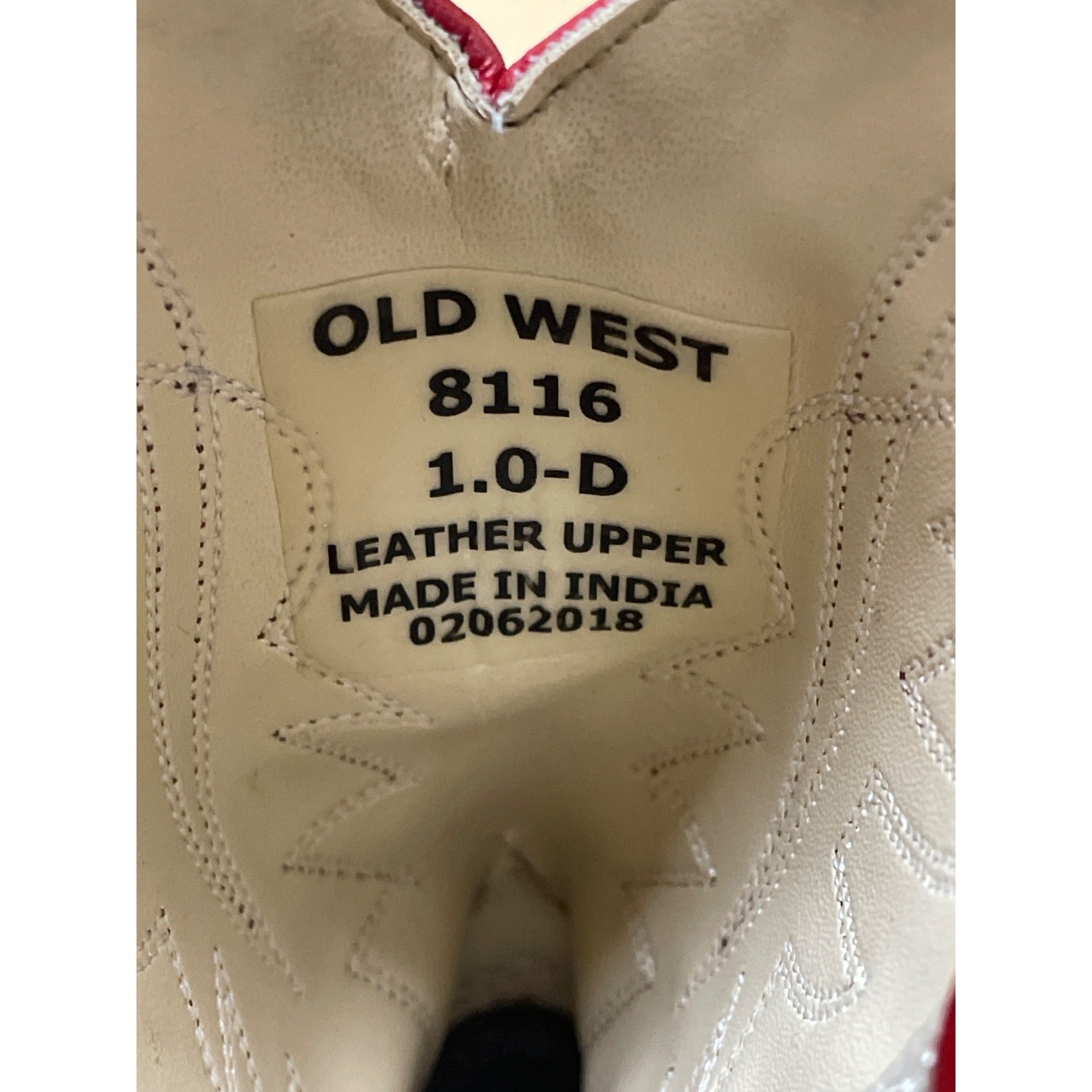 Old West Girls Red Leather Embroidered Cowboy Boots Size 1D Classic Western Style