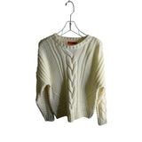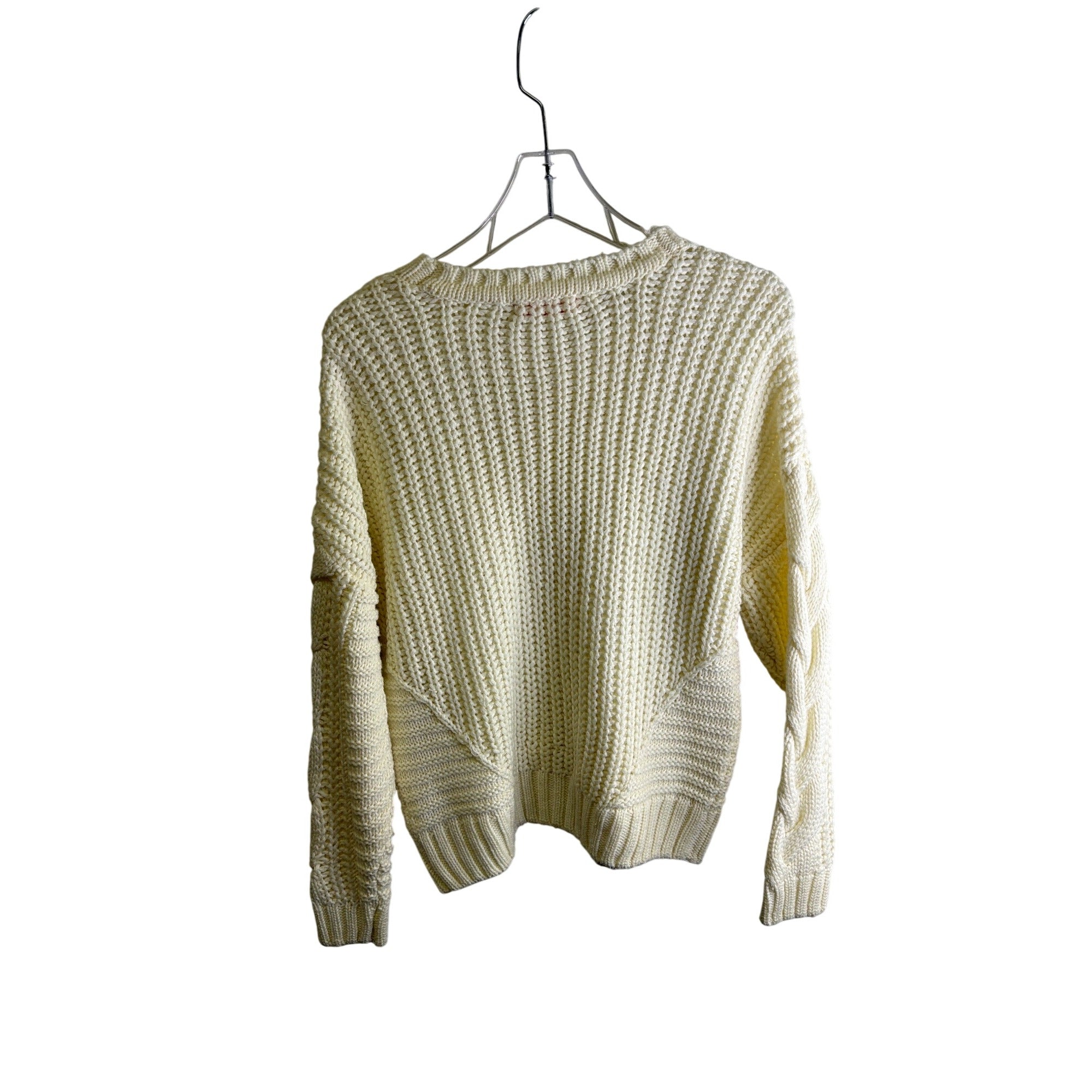One A Womens Cream Knit Pullover Sweater Size S Crewneck Cable & Waffle Knit Ivory