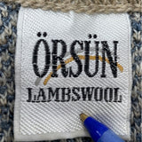Örsün Mens Beige Blue Lambswool Sweater Collared Aztec Pattern Long Sleeve